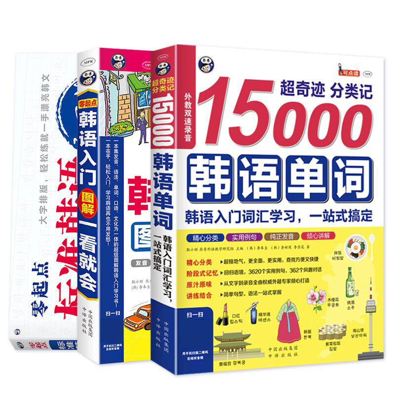 📚 零基础韩语自学入门教材+15000韩语单词+韩语字帖(3册)新标准韩国语初级韩语教材入门图解书籍 零起点韩语语法学韩语的书韩文书