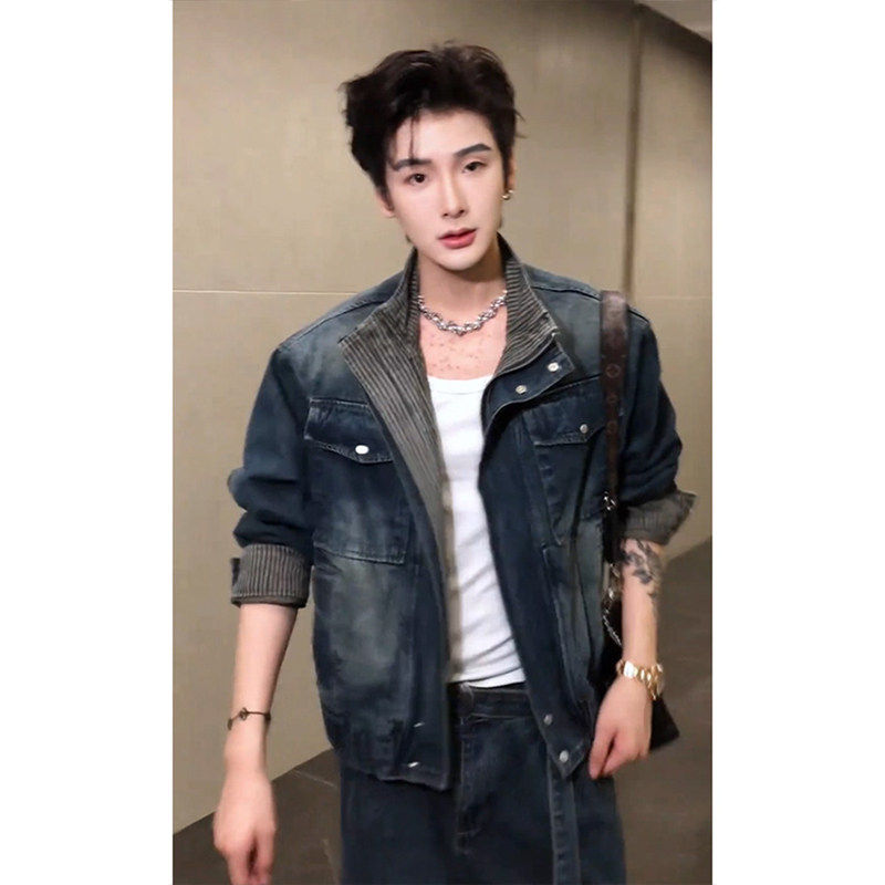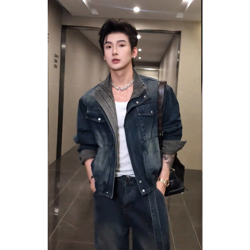 📚 男生酷帅穿搭秋季一整套装牛仔夹克外套装裤子痞帅高级感男士两件