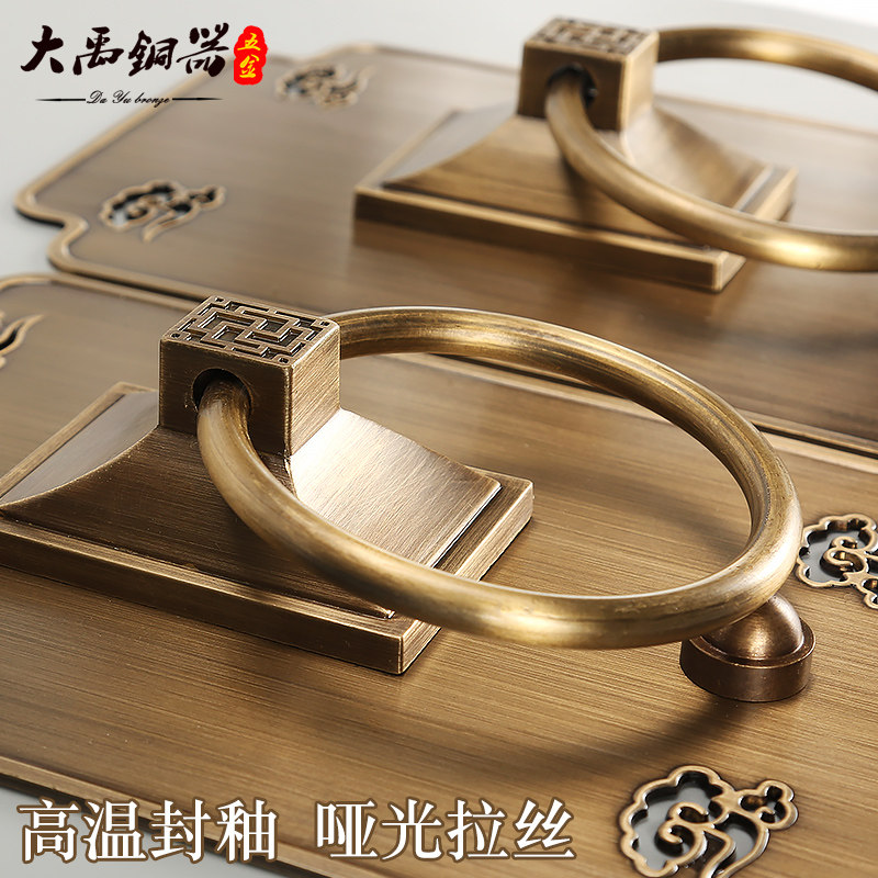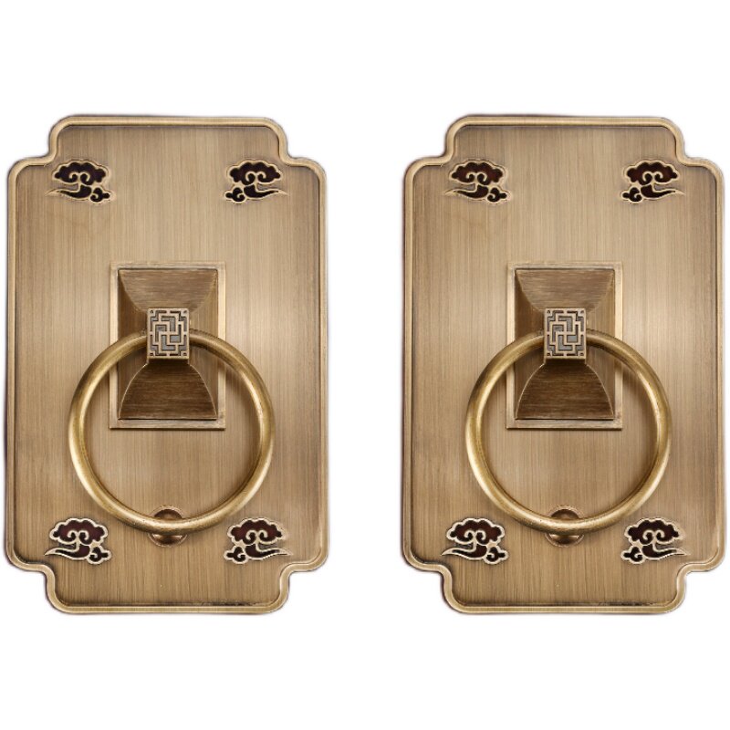 📚 新中式大门仿古拉手纯铜门环复古铜拉环方形老式实木门把手铜拉手