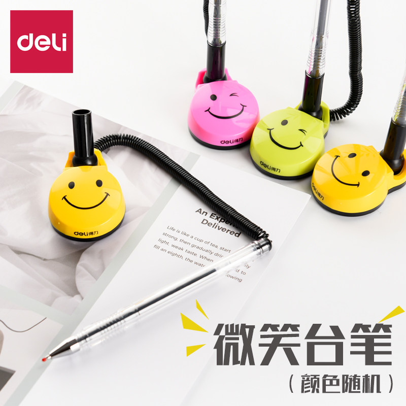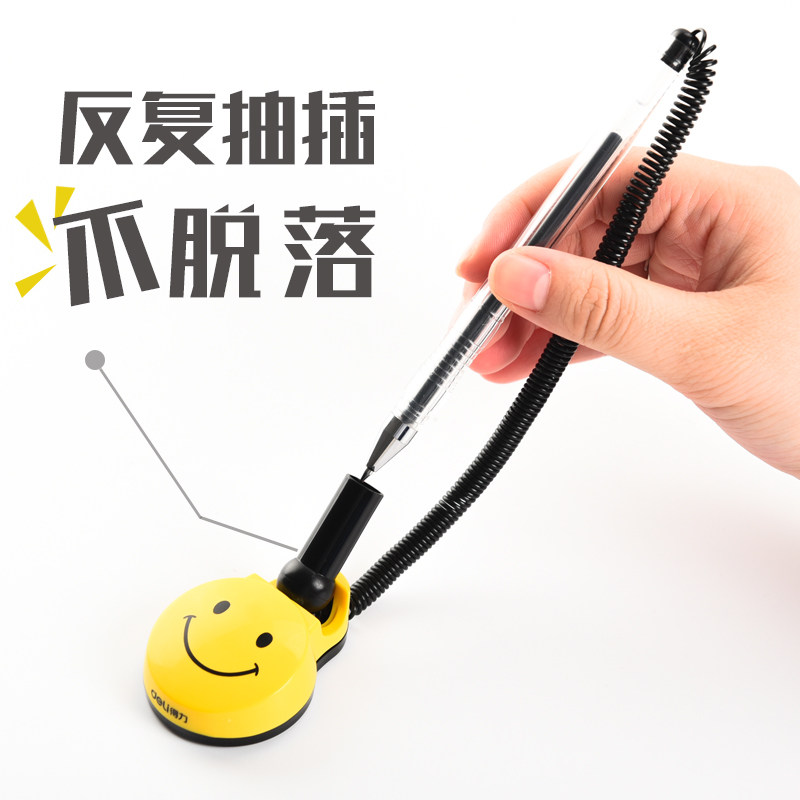 📚 得力4支装 中性笔粘桌笔台笔固定签字笔固定笔柜台桌面可粘贴带绳签字笔办公用品粘在桌子上的笔银行笔柜台笔