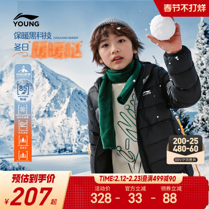 📚 李宁儿童轻薄羽绒服防泼水内胆外套男童装中大童男孩新款冬季冬装