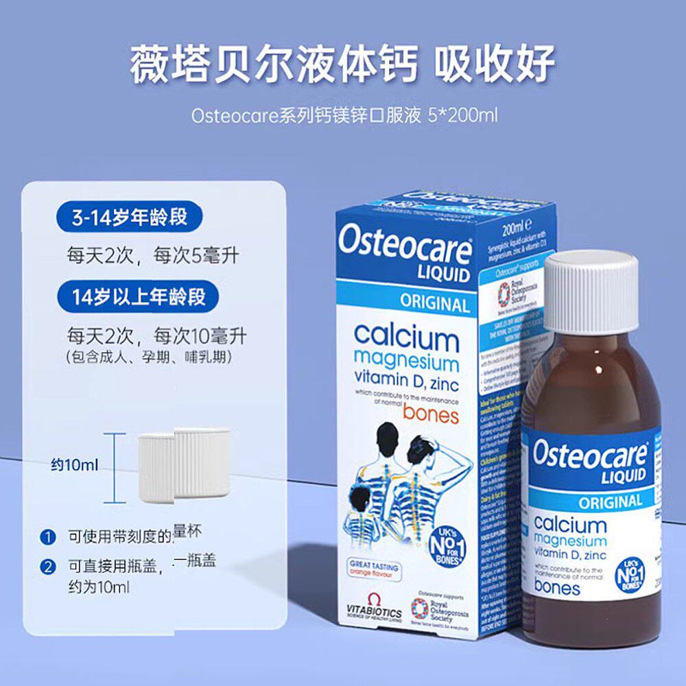 📚 欧洲直邮Vitabiotics Osteocare液体钙镁锌儿童成人孕期补钙5瓶
