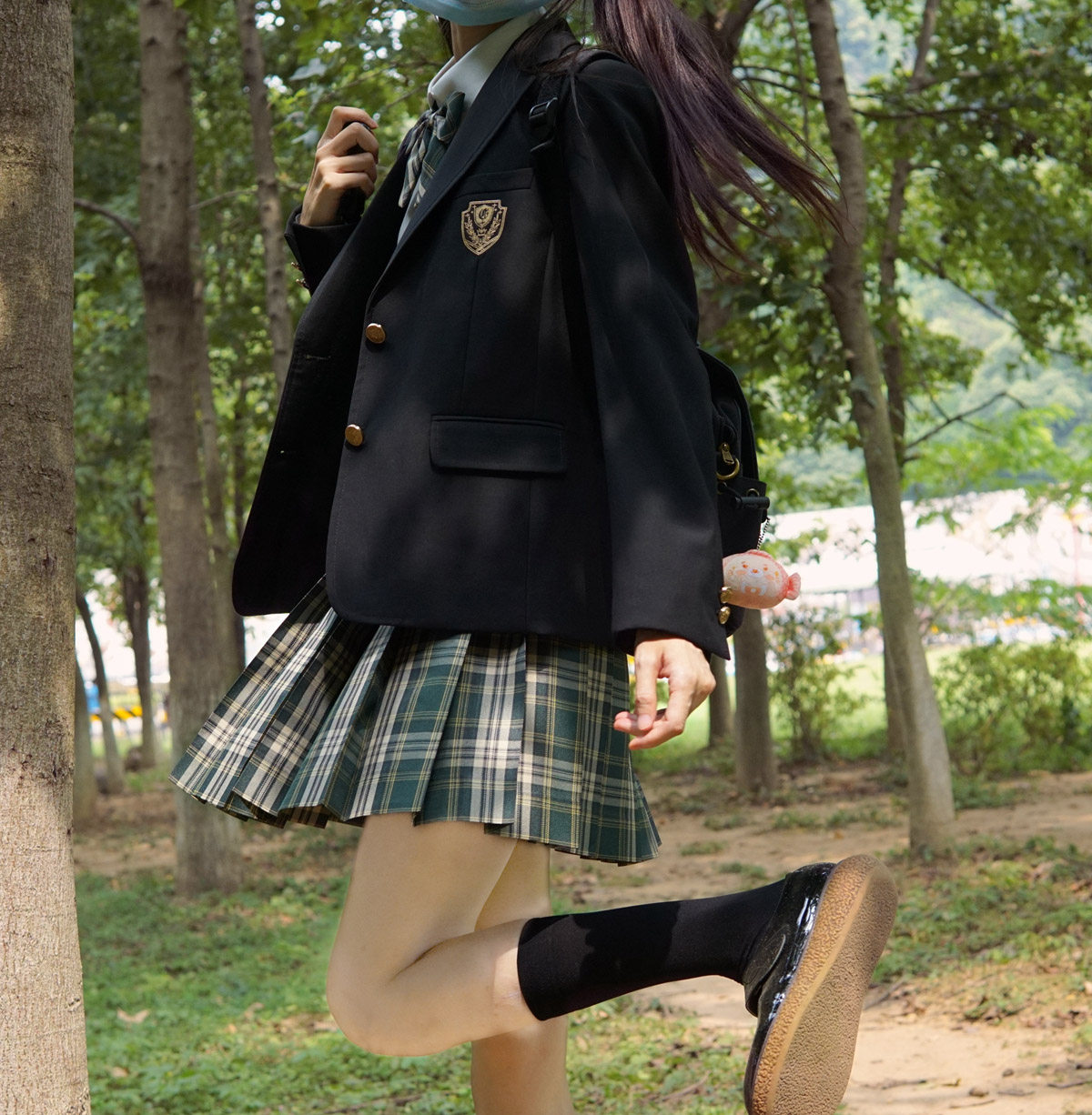 📚 【刺篇】森野川 jk制服裙正版原创学院风绿色校供感格子百褶裙