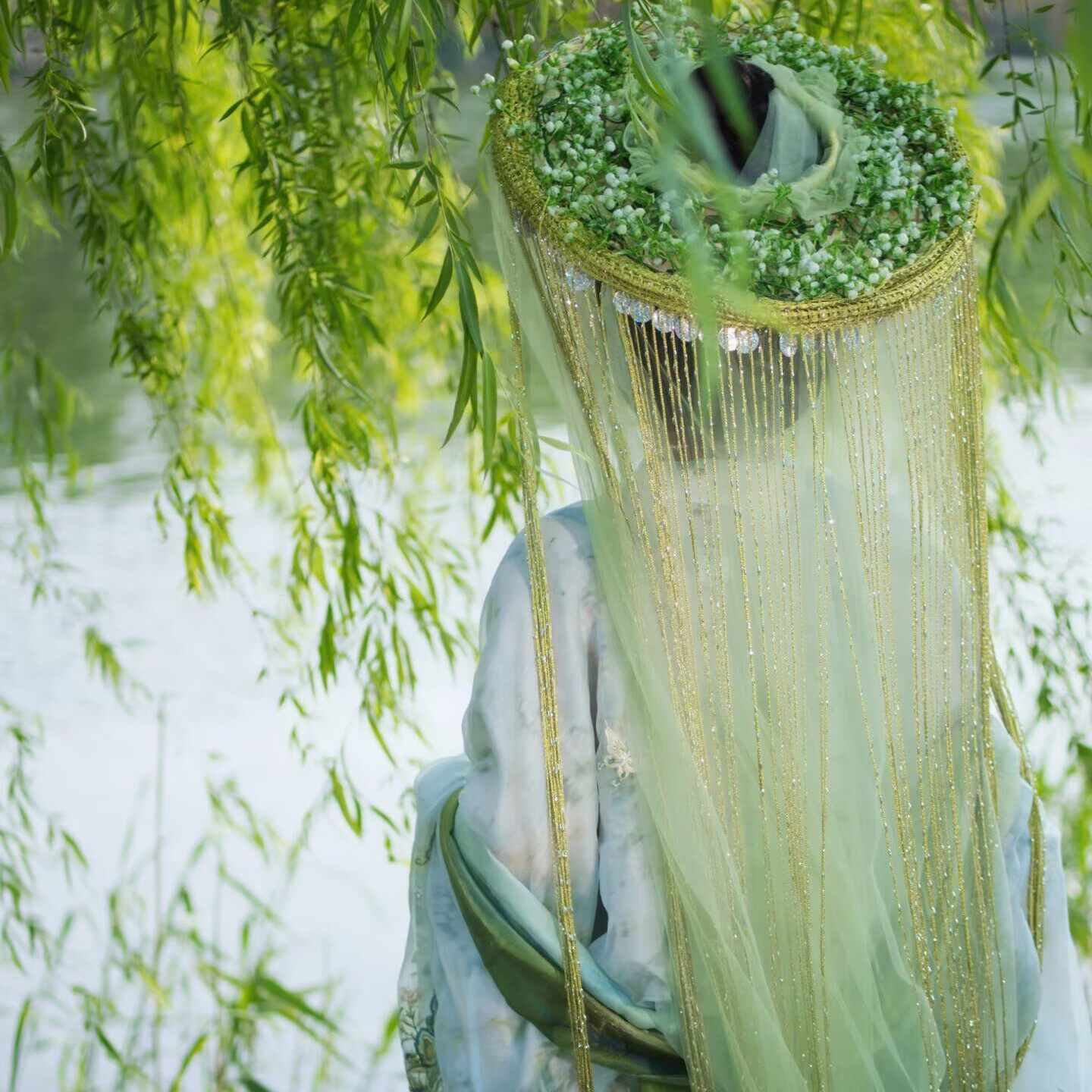 📚 古风汉服diy斗笠帷帽流苏纱帽花朵材料包拍照道具头饰竹片杨柳丝