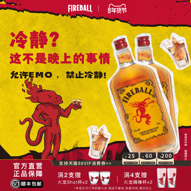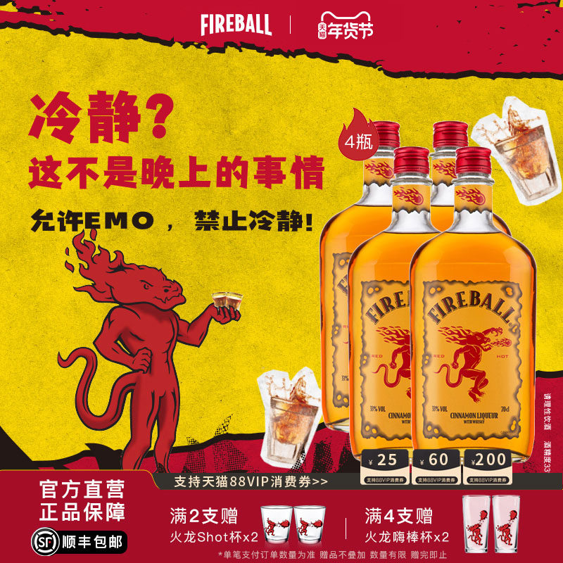 📚 FIREBALL火龙肉桂威士忌利口酒加拿大酒调制酒基酒配制酒whiskey