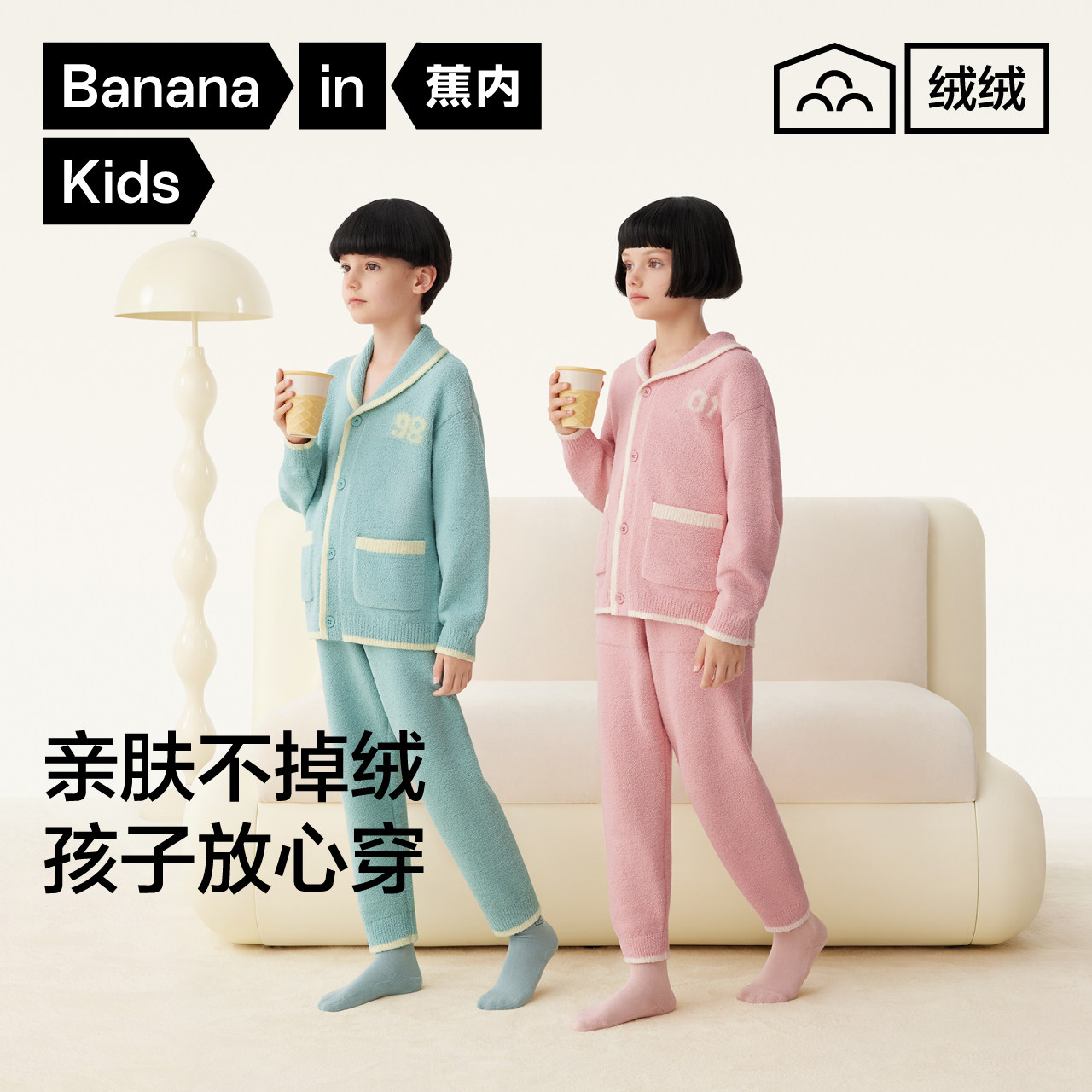 📚 蕉内绒绒500E儿童家居服套装半边绒秋冬款加厚男童女童儿童睡衣