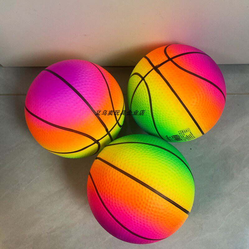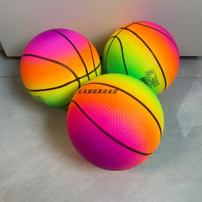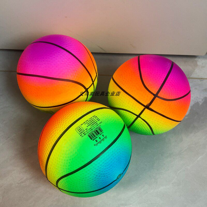 📚 12cm宝贝可充气彩虹皮球儿童拍拍球幼儿园弹力球迷你小篮球哈哈球