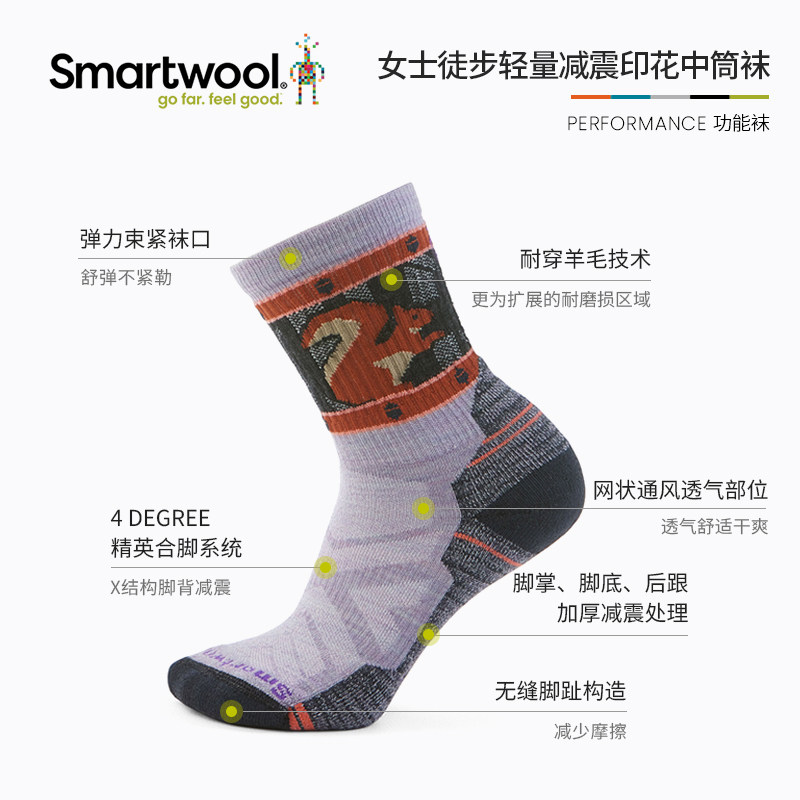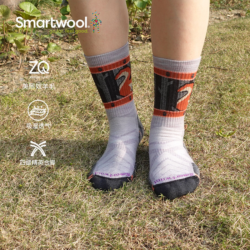📚 smartwool女徒步轻量减震印花中筒袜美利奴羊毛袜户外运动袜2738