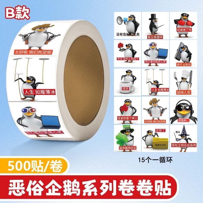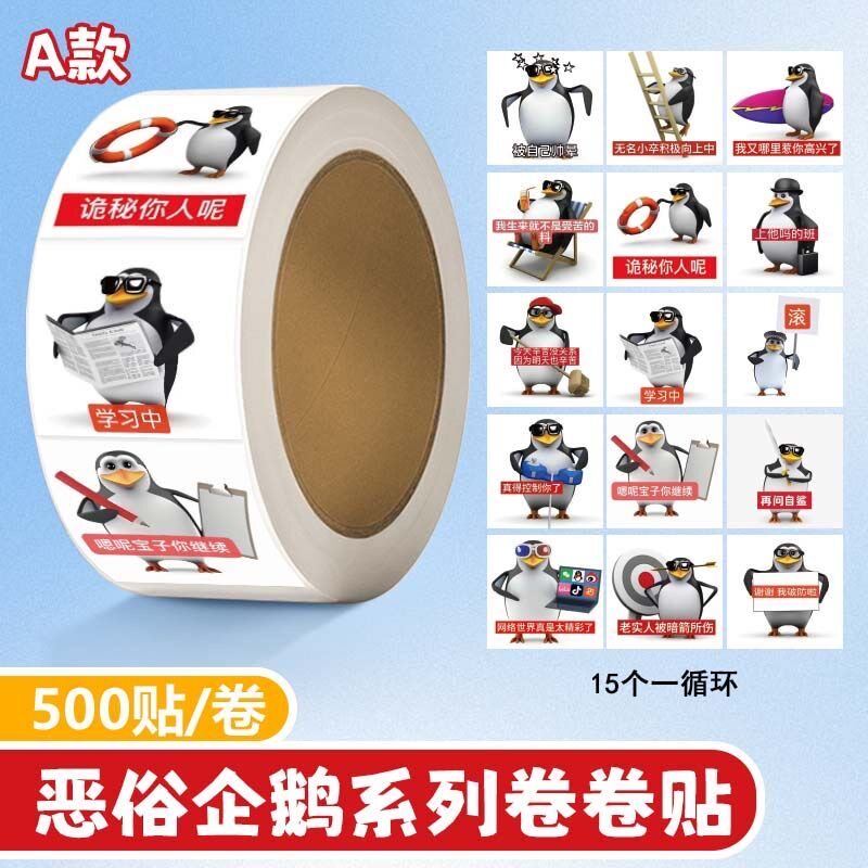 📚 恶俗企鹅搞怪抽象卷卷贴高质量周边图案网络热梗搞笑个性装饰贴画