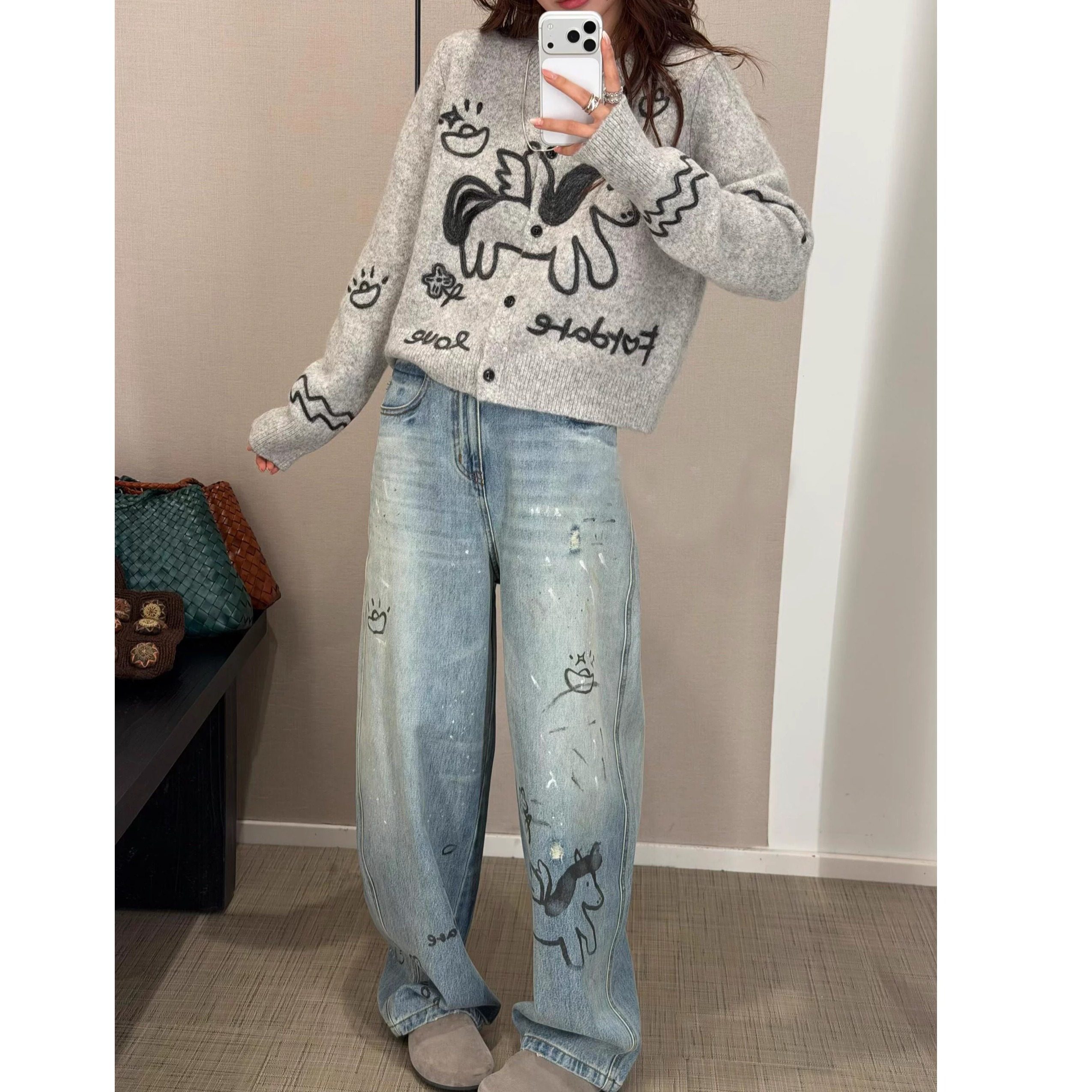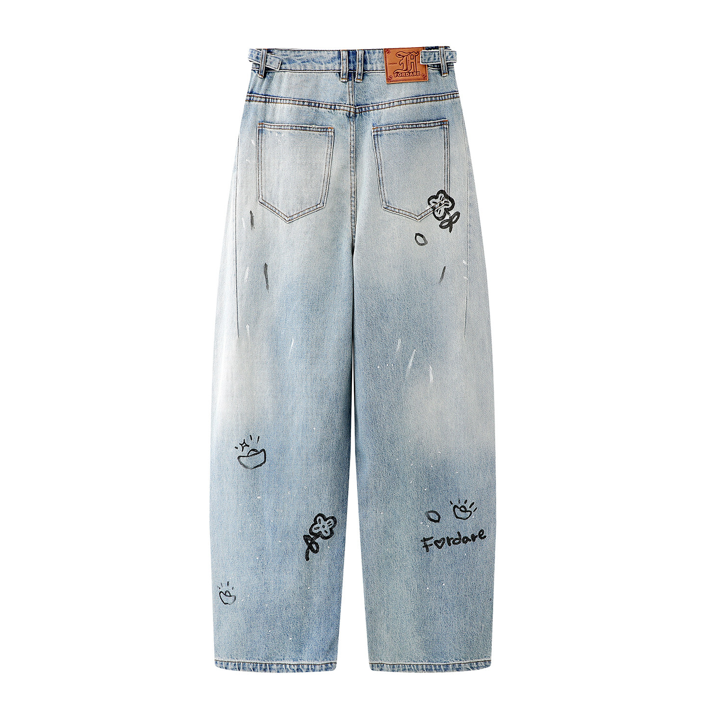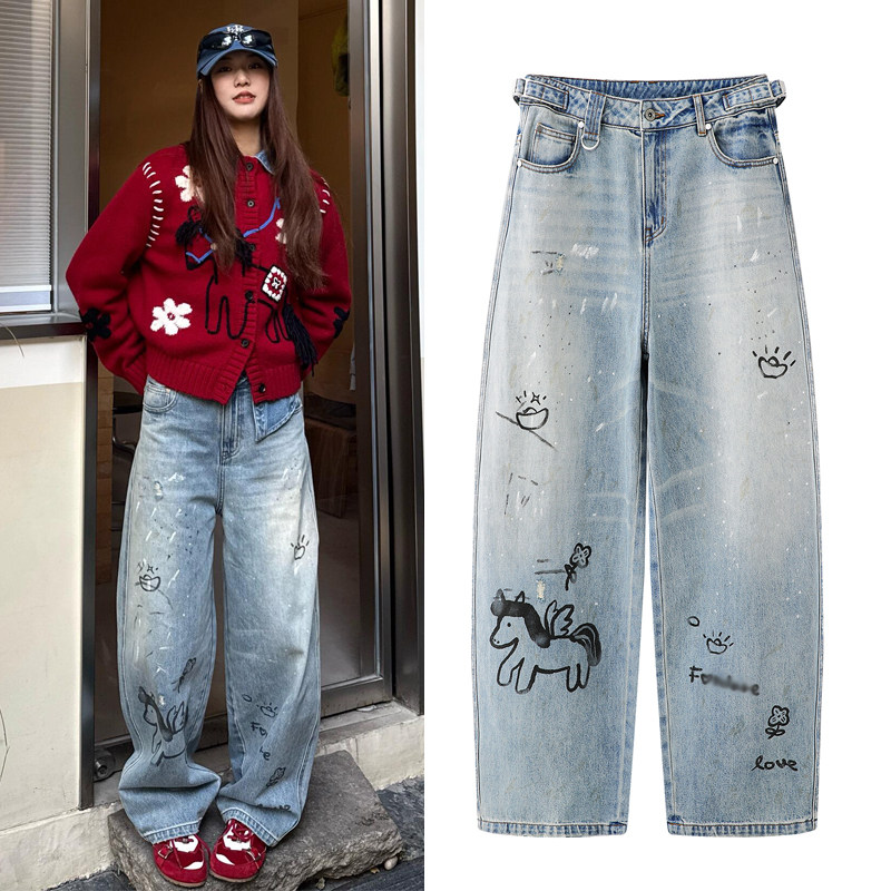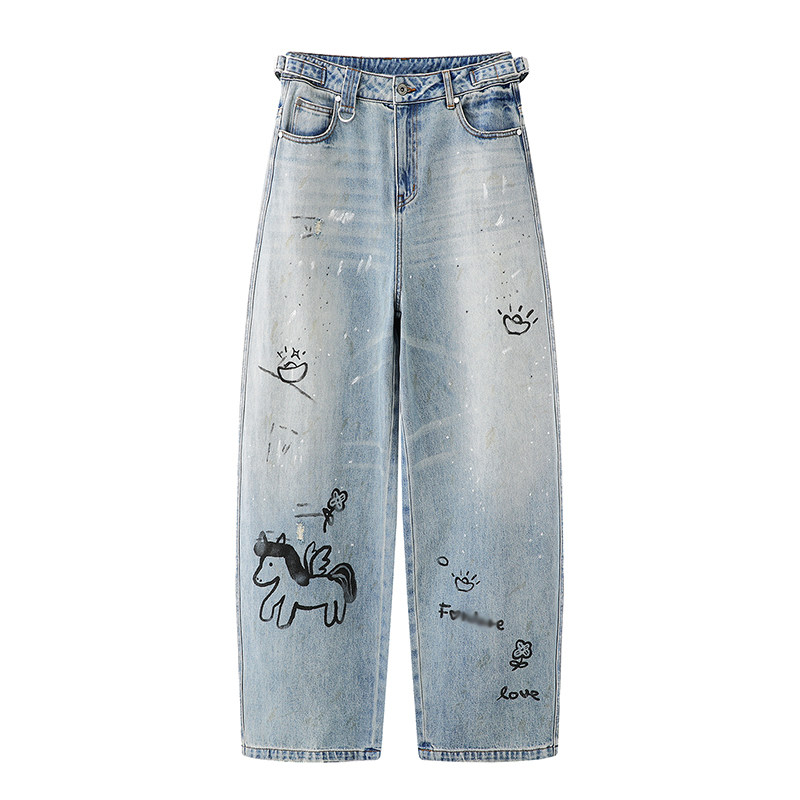 🎁 这款牛仔裤的设计简直太有创意了,卡通涂鸦印花的设计,让人一眼就爱上了它。而且,阔腿直筒的设计更是显得优雅又大方。穿上它,仿佛整个世界都变得温柔起来。