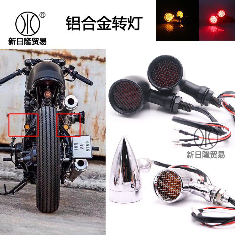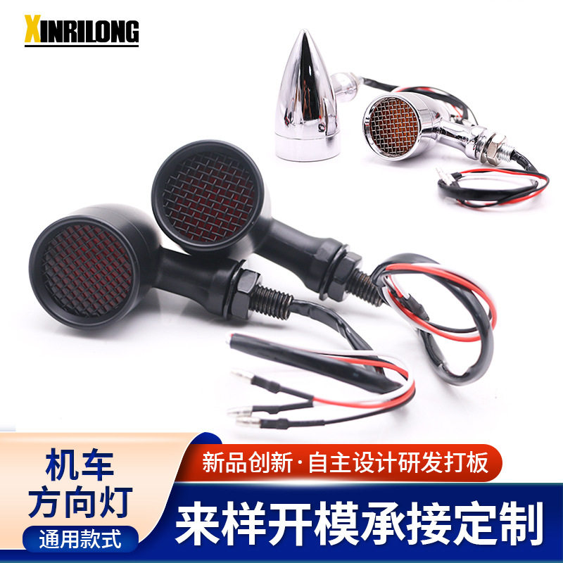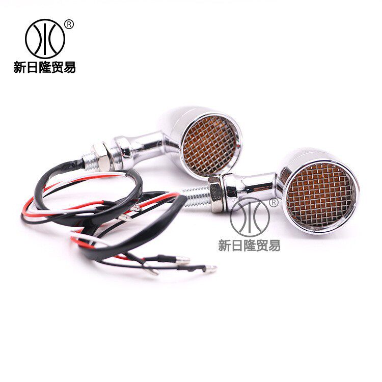 📚 摩托车配件铝合金LED转弯灯复古改装子弹头网格转向灯指挥灯