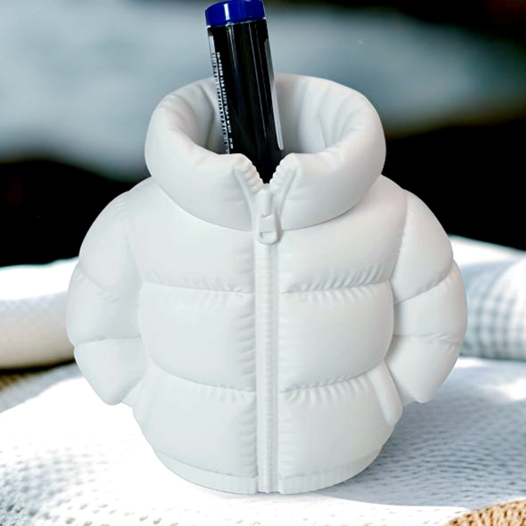 📚 爆款羽绒服笔筒韩版小清新甜美褶皱云朵包女化妆品桌面收纳盒摆件