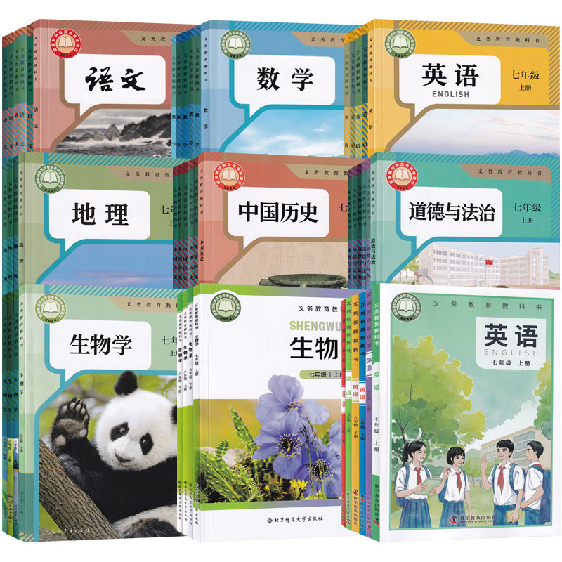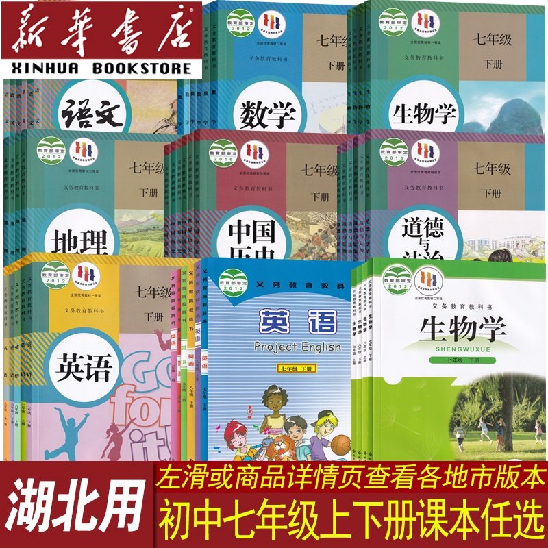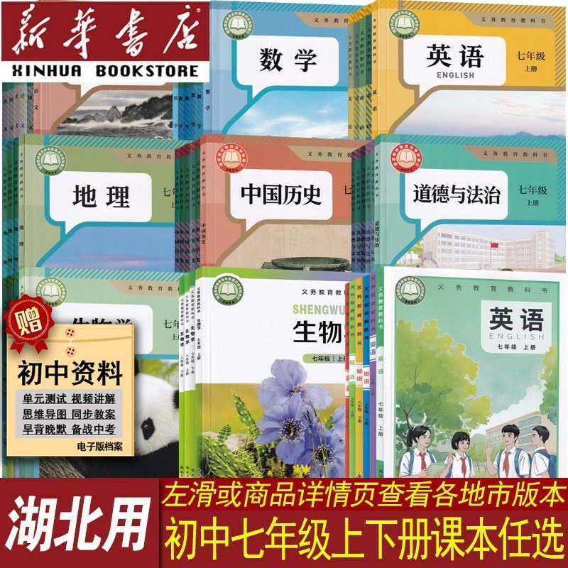 📚 【新华书店正版】湖北省各地区适用初中7七年级上册下册课本全套教材教科书初一1上下册语文数学英语历史政治地理生物书下册全套