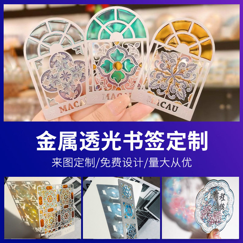 📚 镂空玻璃光影透明漆金属书签定制可透光城市博物馆文创黄铜不锈钢
