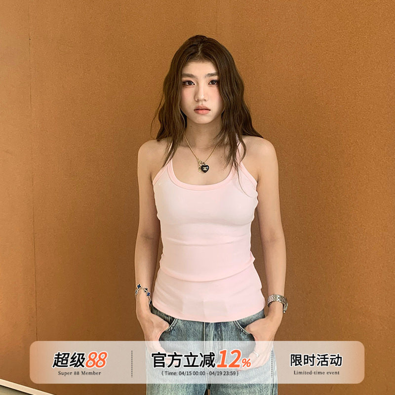 📚 橘子树在哪儿纯欲粉色吊带小背心女夏季辣妹美背显瘦无袖内搭上衣