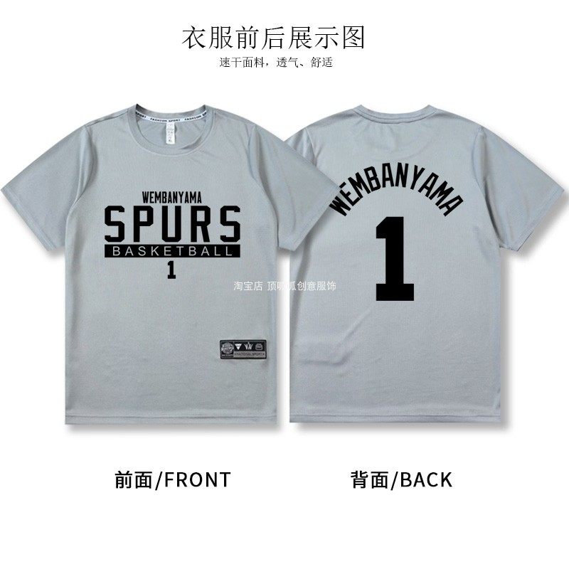 📚 速干美式马刺文班亚马篮球衣短袖T恤投篮训练服米切尔弗拉格上衣