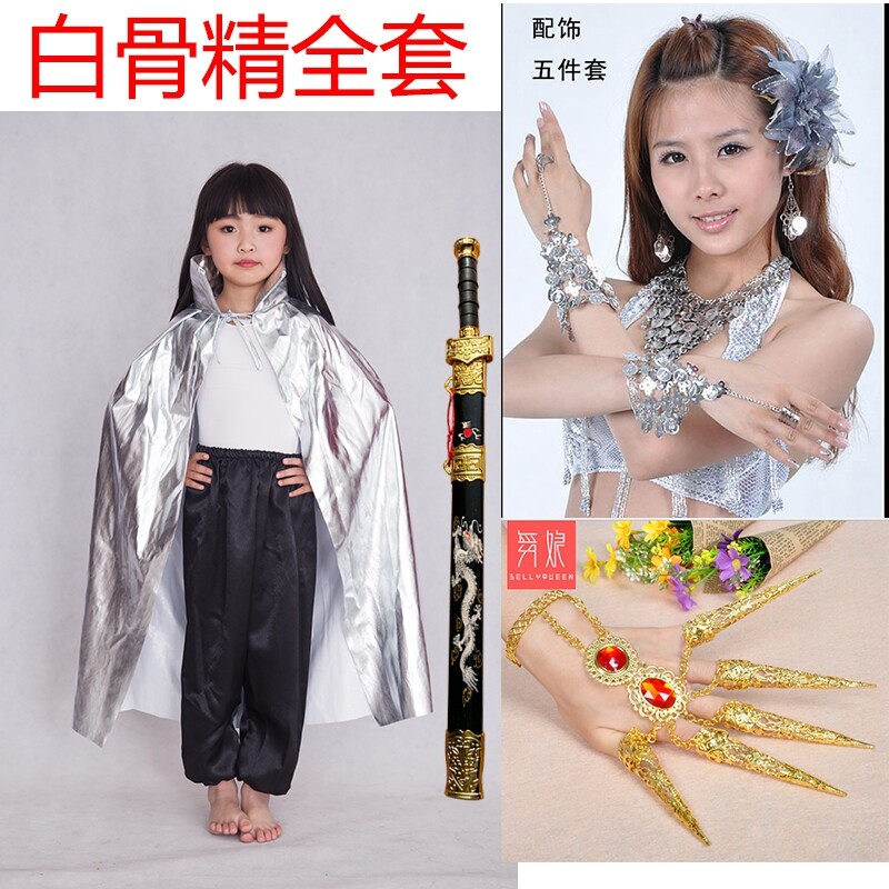 📚 儿童西游记白骨精演出服三打白骨精表演服白骨精头饰披风宝剑套装