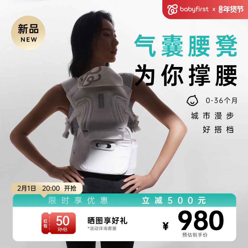📚 babyfirst宝贝第一气囊腰凳背带二合一外出轻便充气护腰抱娃神器