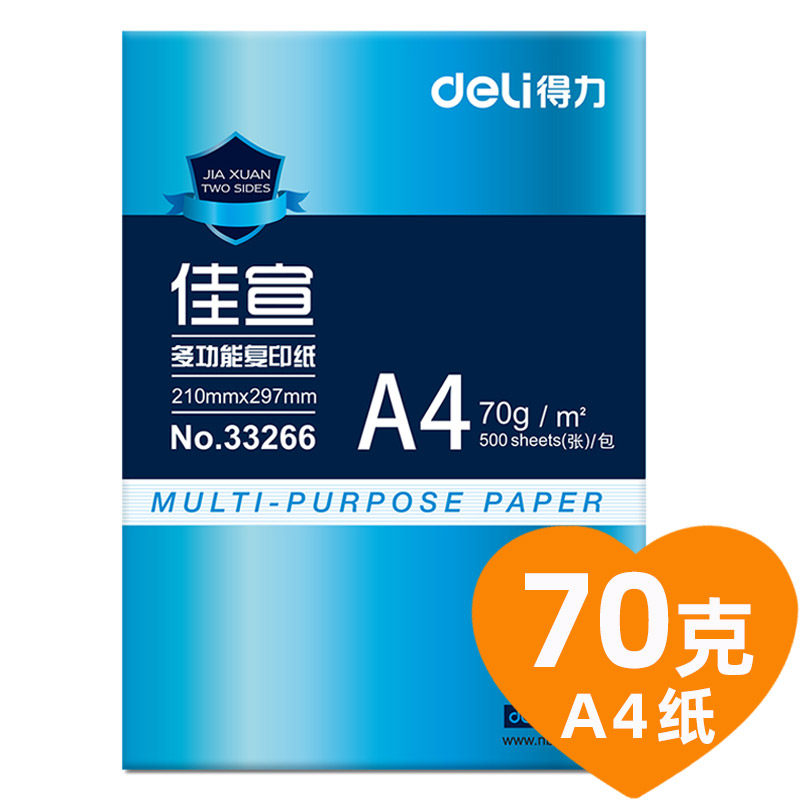 📚 得力A4复印纸70g500张电脑打印a4纸纯木桨白纸学生用草稿纸单包70克复印纸双面打印80克办公用品包邮