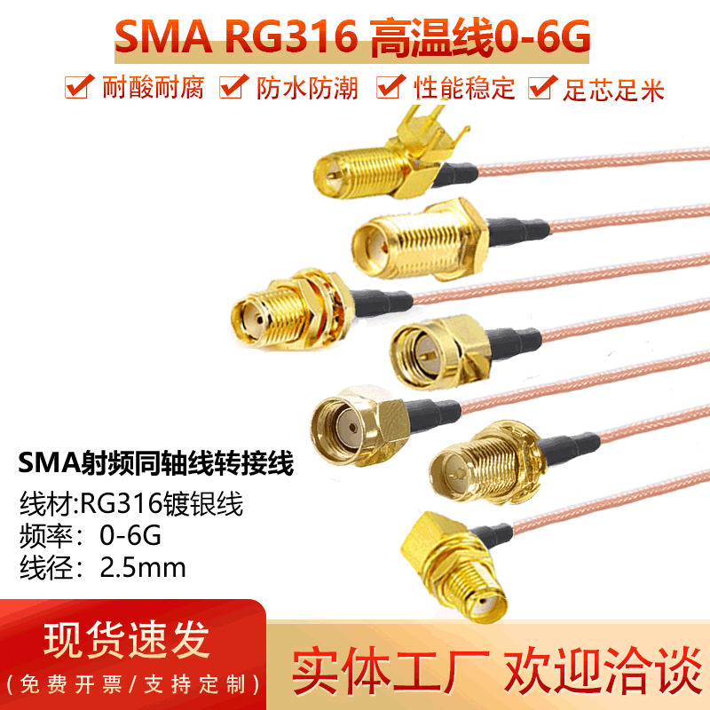 📚 RG316线SMA公头转母头跳线弯头转接线连接线天线延长线0-6G射频线
