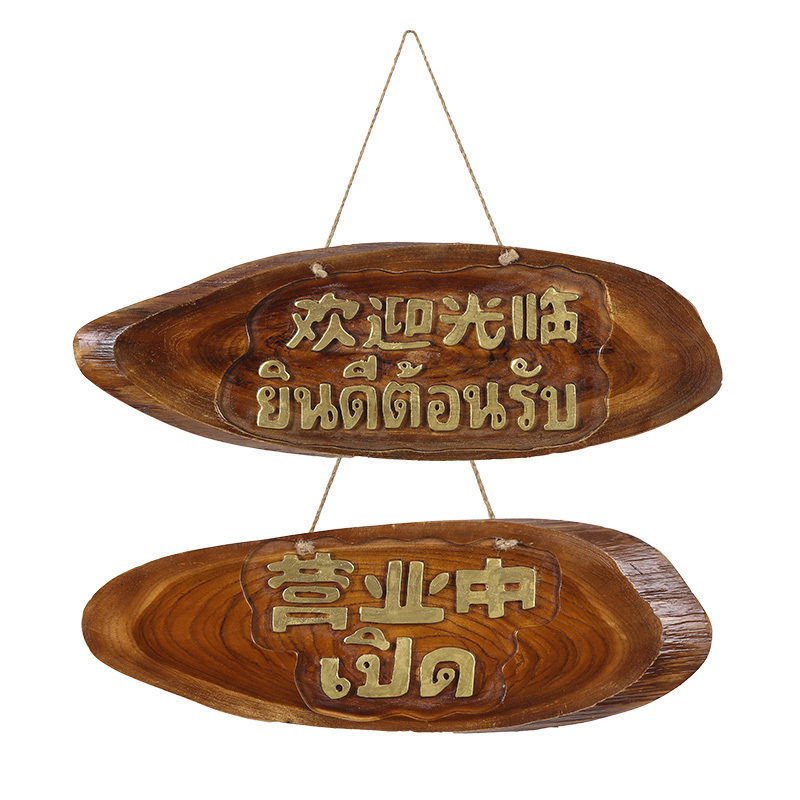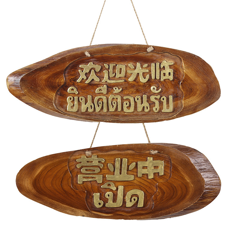📚 泰国木头挂牌正在营业中欢迎光临店铺门牌 中式仿古木质挂牌定制