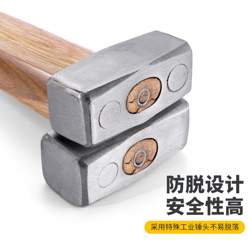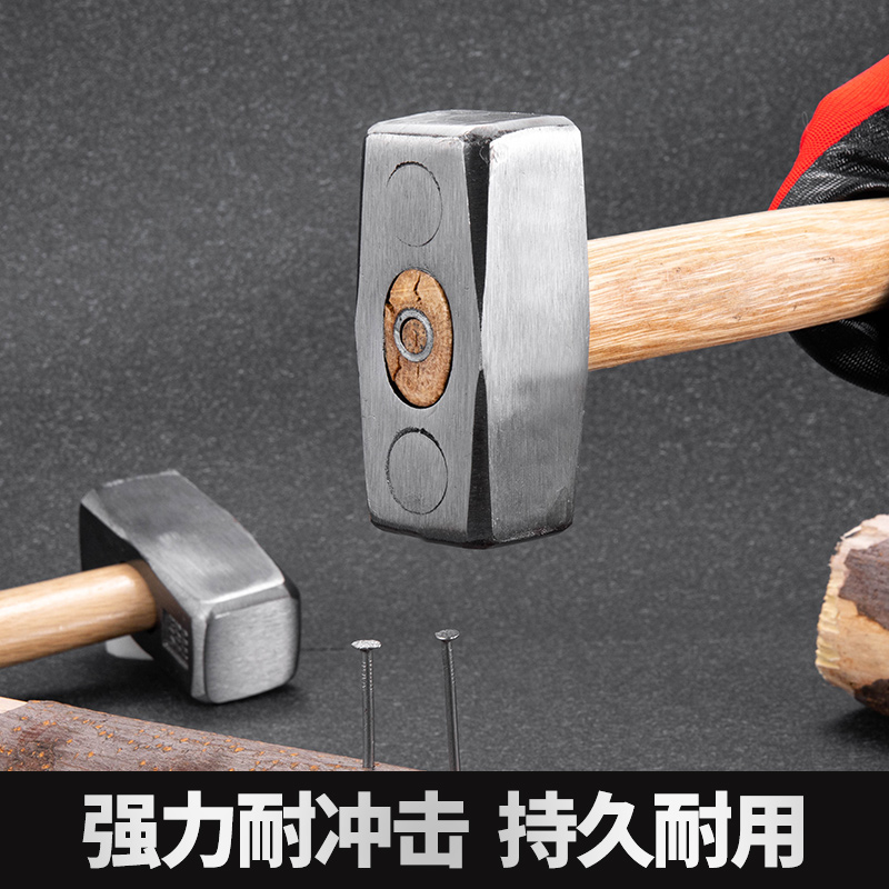 📚 木柄石工锤方头锤子包塑柄重型石工锤子大榔头大铁锤八角锤木工锤