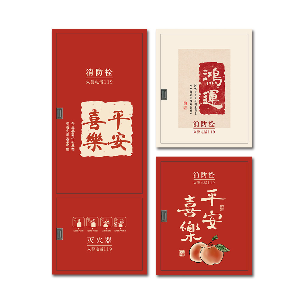 📚 创意平安喜乐消防栓贴纸消火栓门灭火器箱标识遮挡自粘装饰贴画