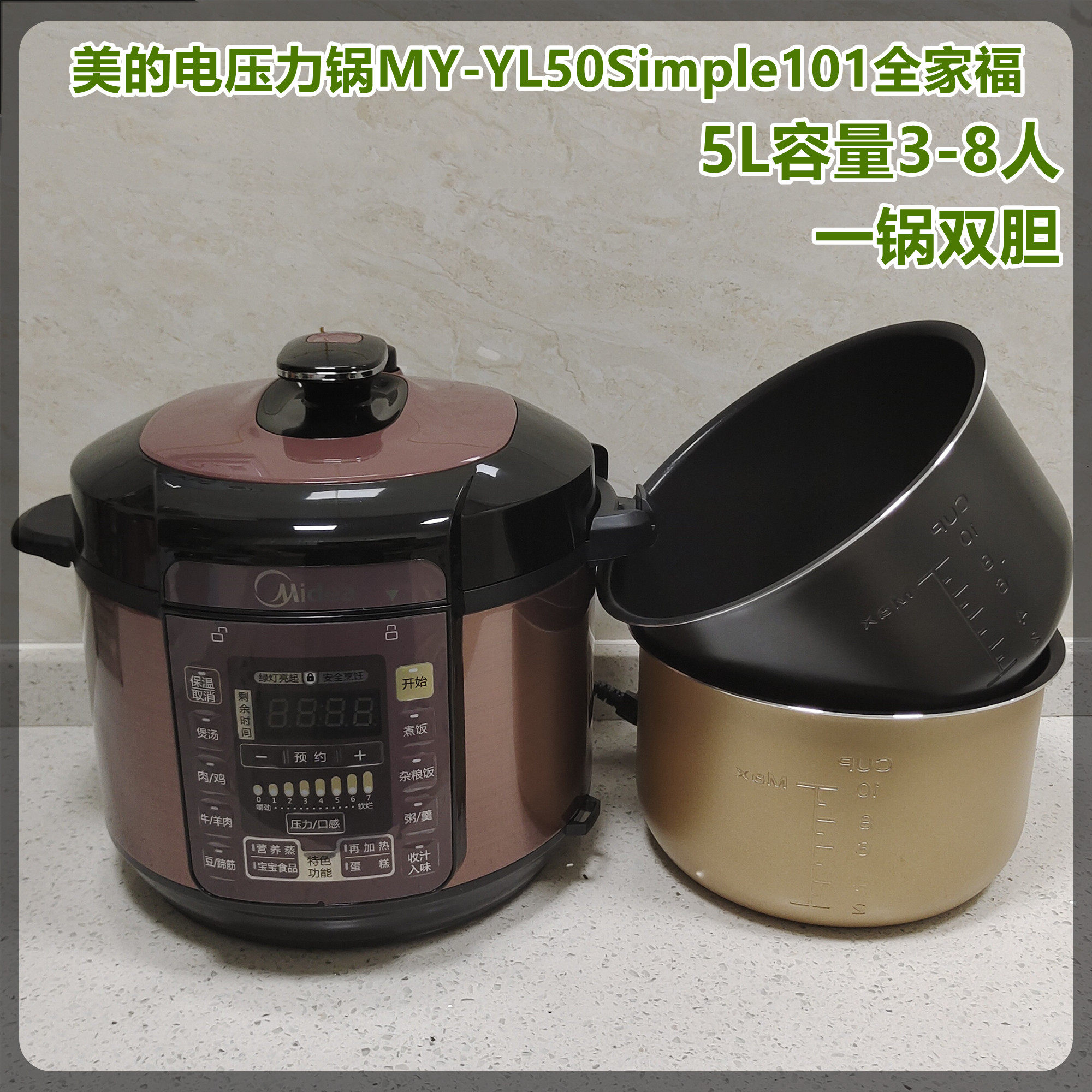 📚 Midea/美的 MY--YL50Simple101双胆5L大容量多功能电压力锅可预约