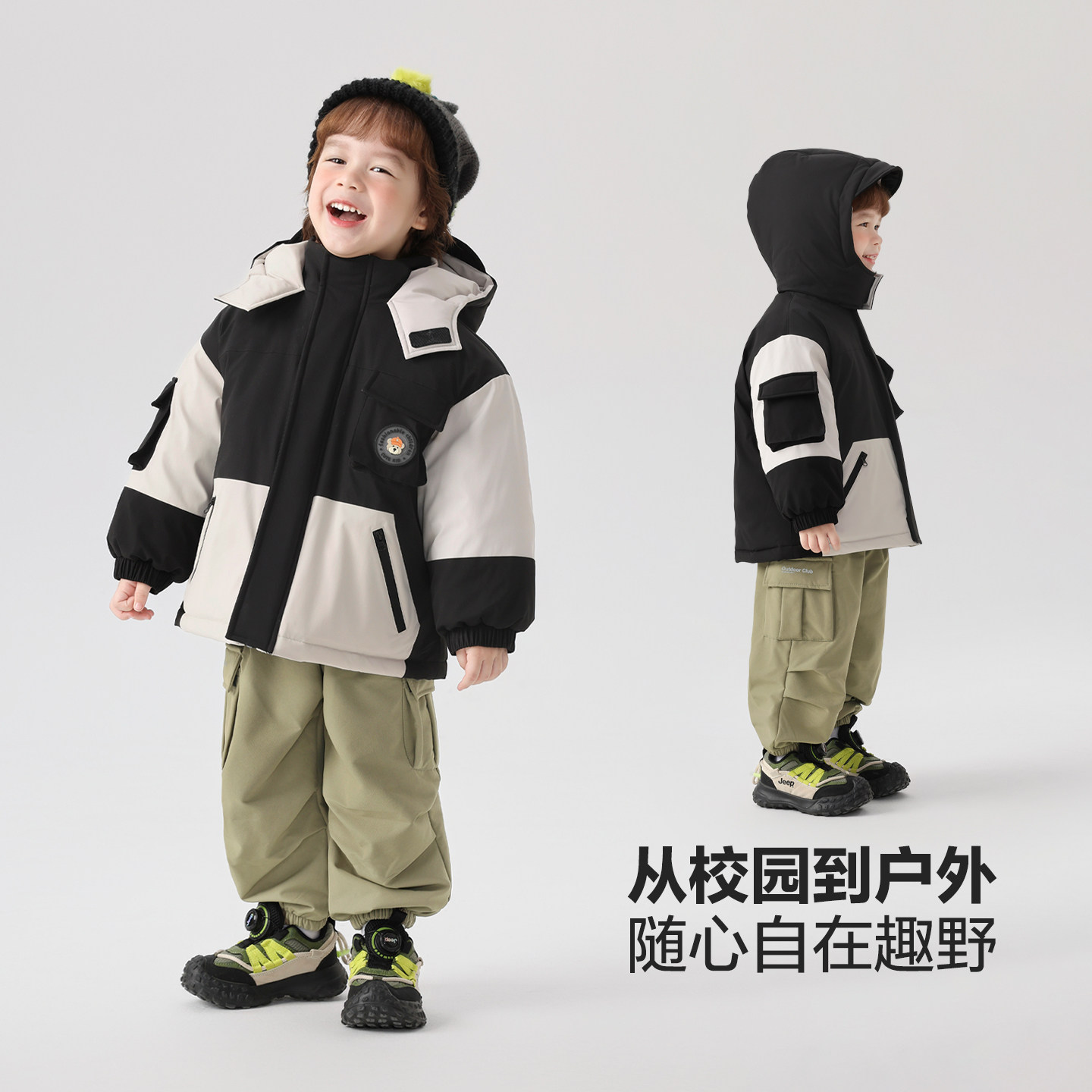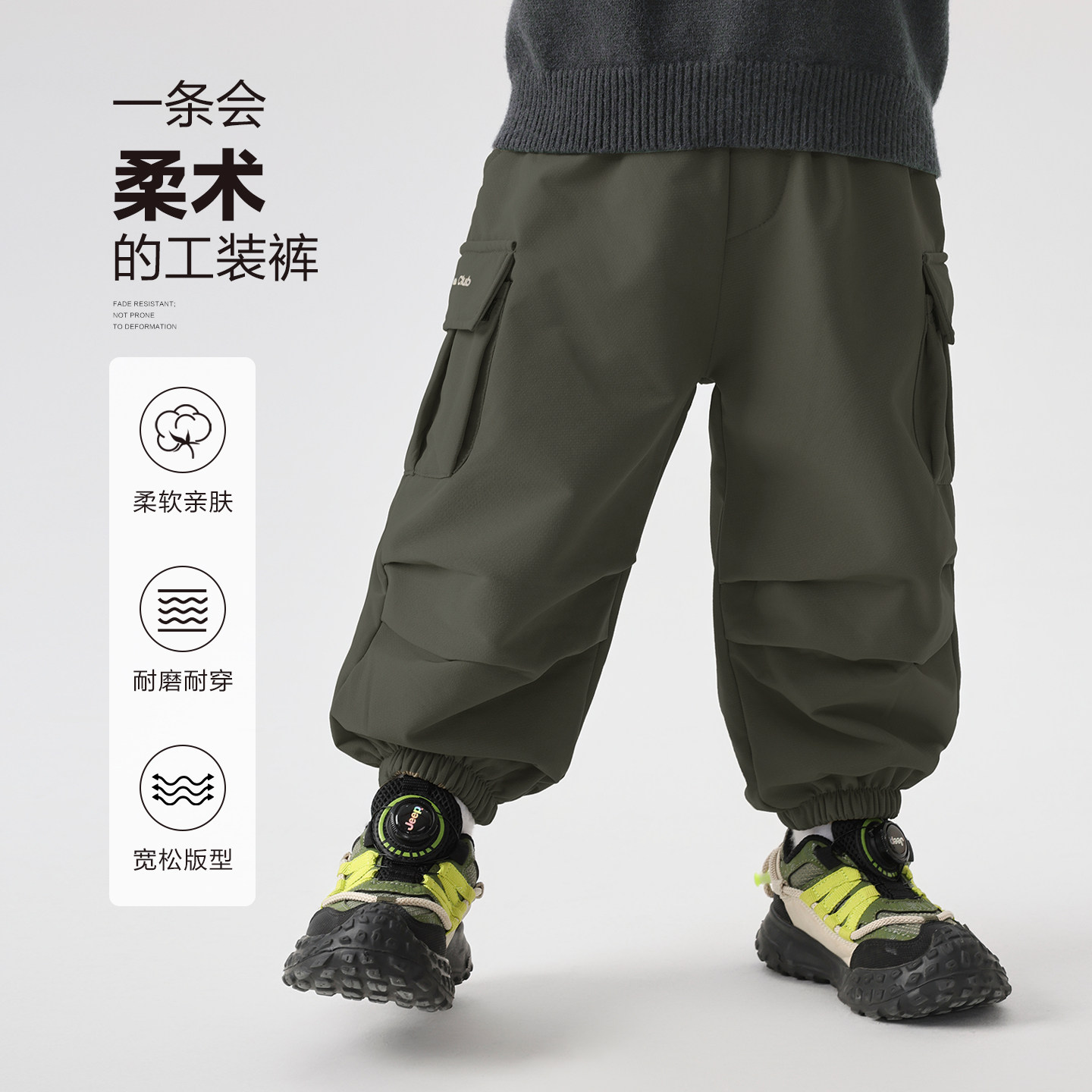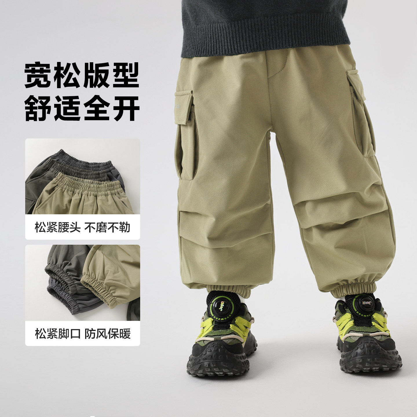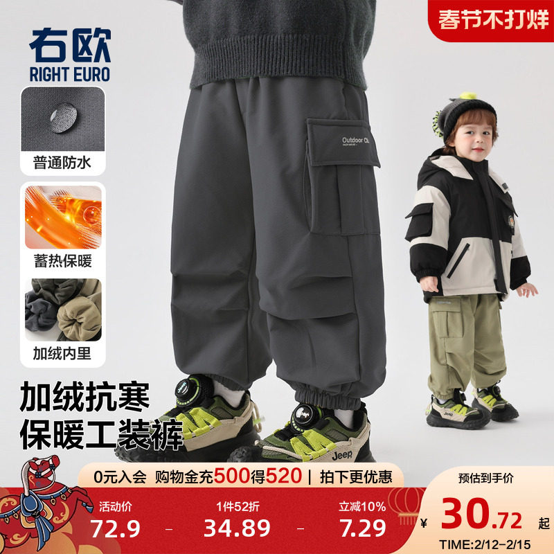 📚 右欧儿童加绒加厚工装裤防水冬季新款童装男童女童户外束脚长裤子