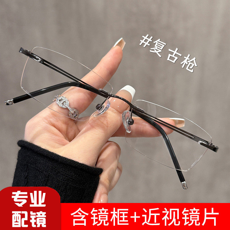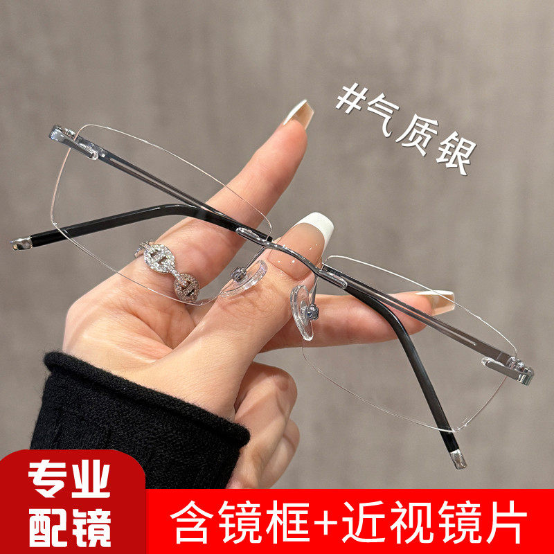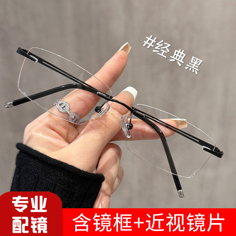📚 【含整套配镜】8g超轻无框眼镜男近视眼镜可配度数变色纯钛无边框