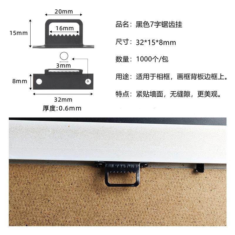 📚 泰圣相框五金配件 电表箱画框挂钩 黑色7字锯齿挂钩8x32mm