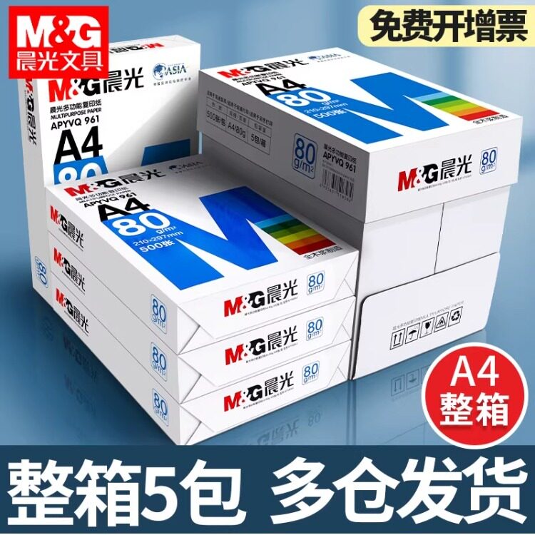📚 晨光A4纸70g/80g打印纸复印纸全木浆500页2500页草稿学生用办公用品a4纸打印白纸整箱5包装白色a4打印纸包邮