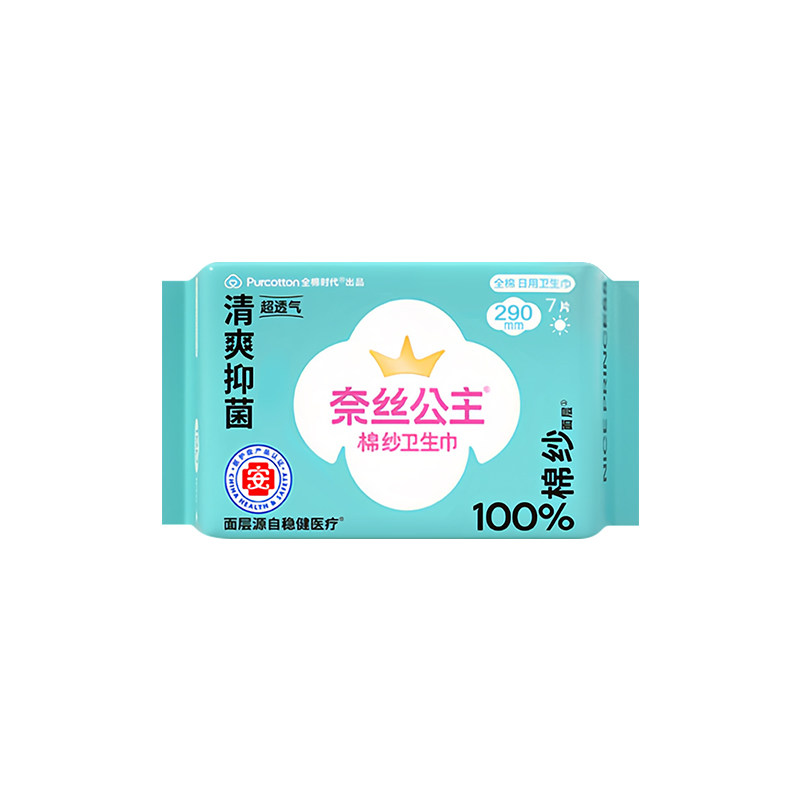📚 全棉时代奈丝公主卫生巾夜用纱布290mm一包7片棉纱干爽透气姨妈巾