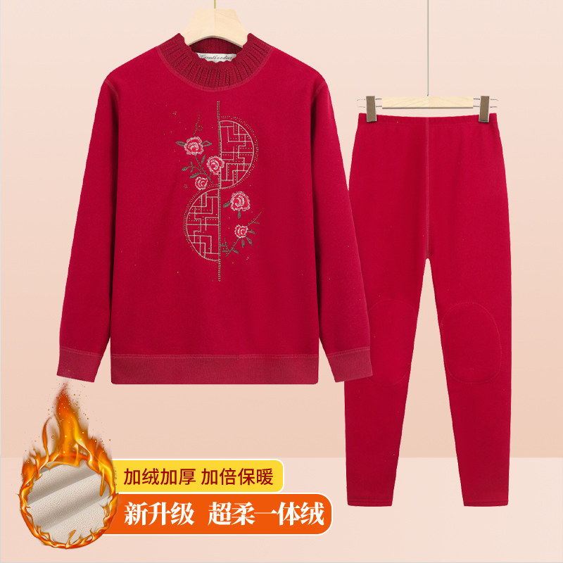 📚 中老年人保暖内衣套装女加绒加厚妈妈秋衣秋裤老太太内搭打底衣服