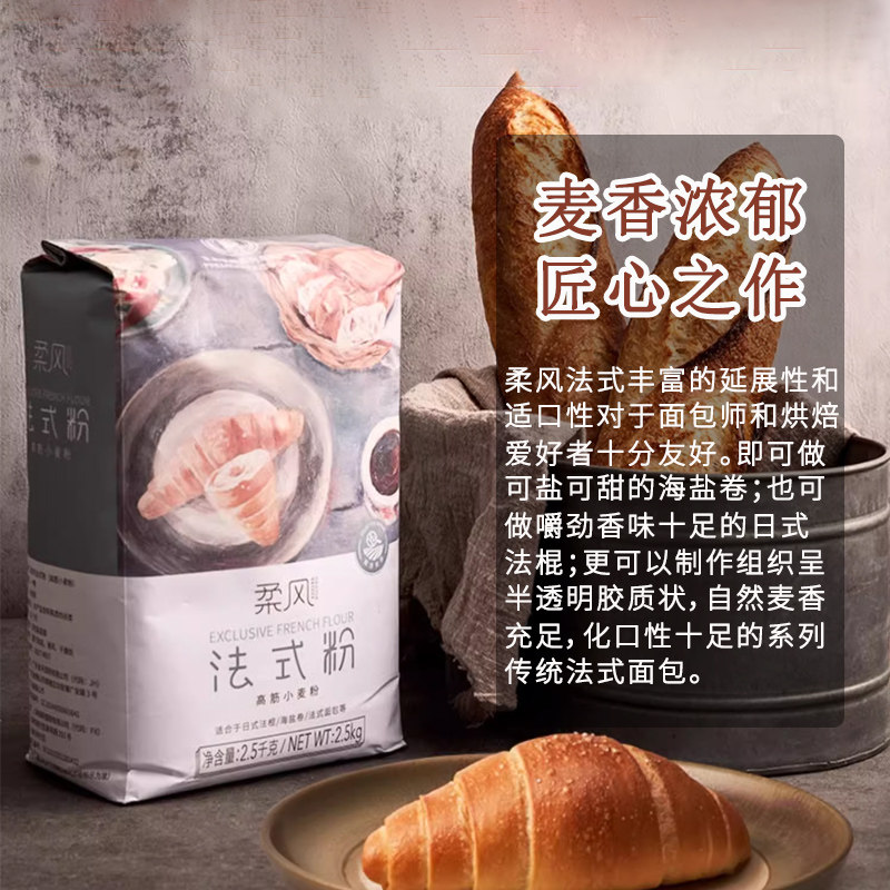 📚 王后柔风法式粉2.5kg 高筋小麦面粉海盐卷法式面包吐司烘焙原料