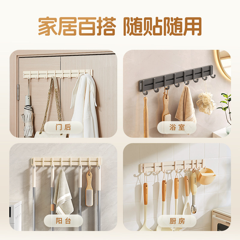 📚 连排挂钩免打孔强力可移动浴室置物架粘钩门后挂衣钩厕所厨房挂架