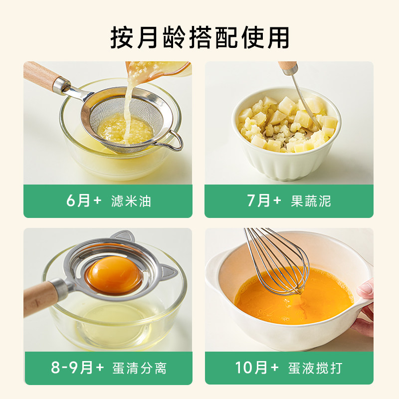 📚 浦利顿宝宝辅食米油过滤网筛家用婴儿辅食工具不锈钢漏勺压泥勺