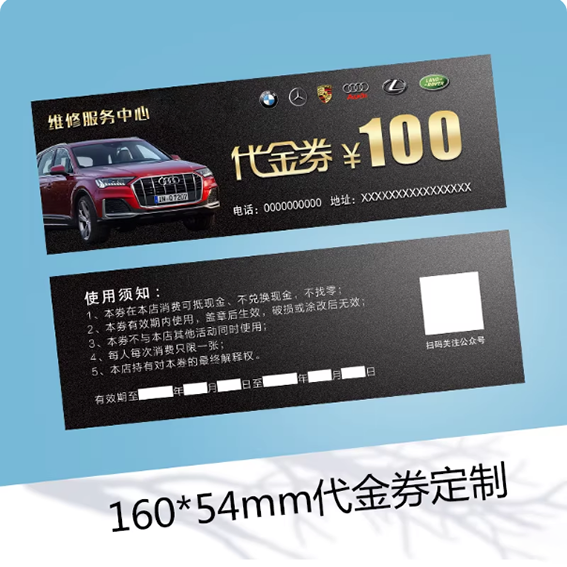 📚 汽车服务中心维修代金券工时优惠券保养美容打蜡镀晶活动卡设计4S