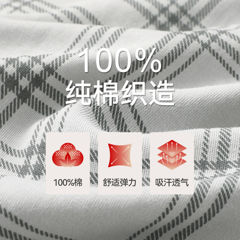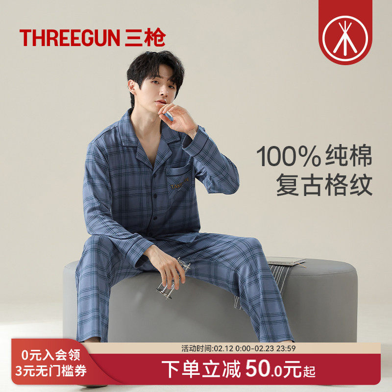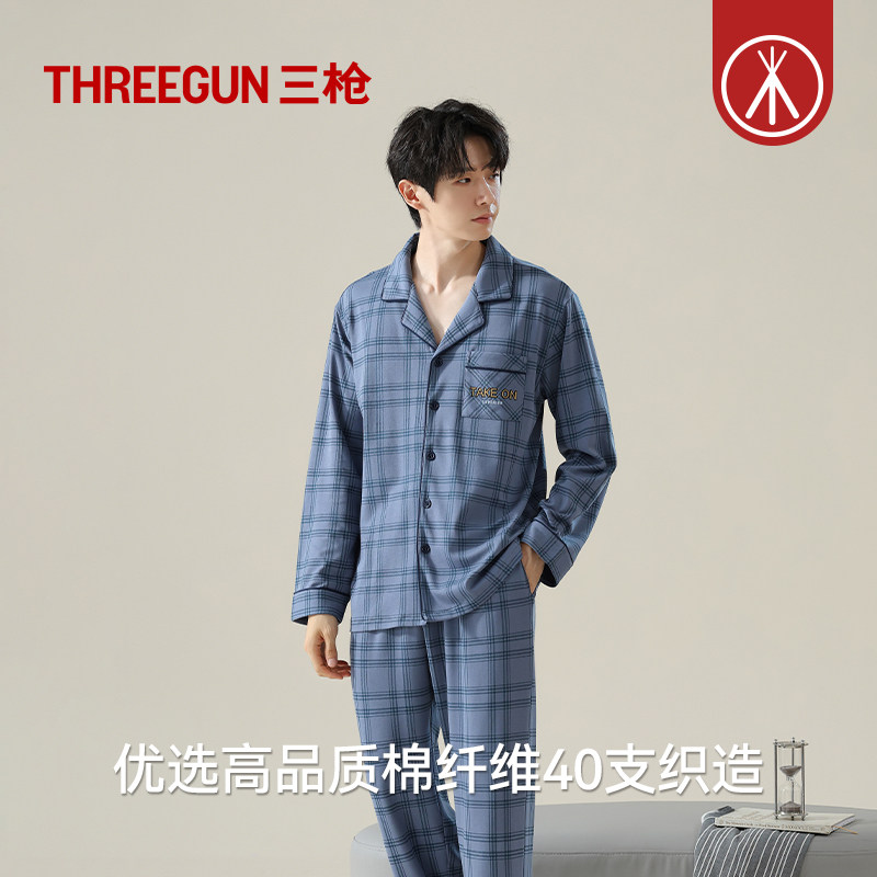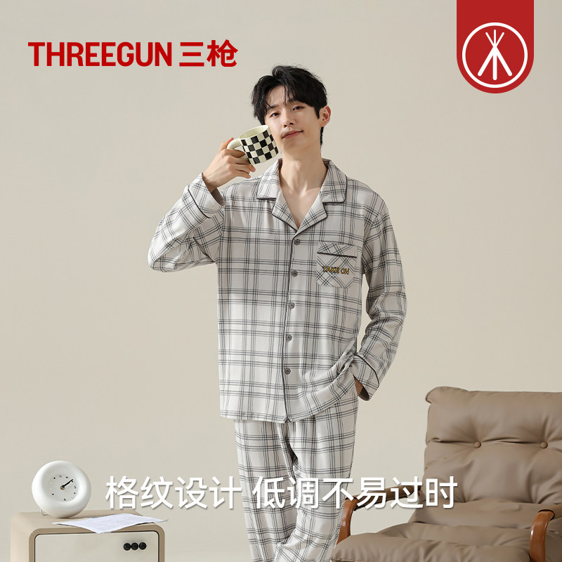 📚 三枪男纯棉睡衣格子印花春夏新款可外穿长袖全棉超柔软家居服