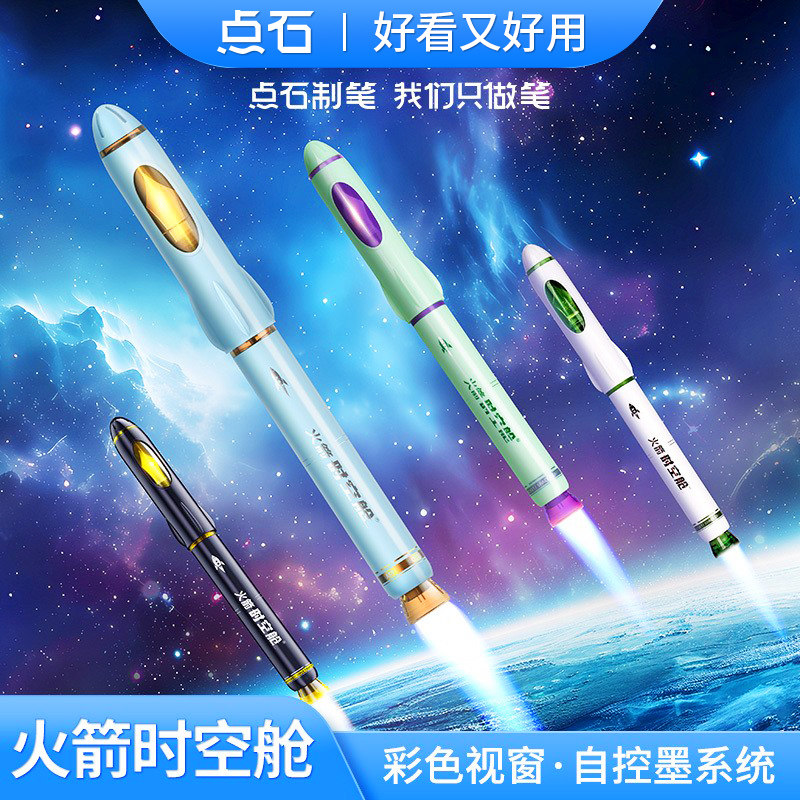 📚 点石火箭时空舱不溅墨细尖钢笔DS-7157点石制笔明尖0.5mmF尖三年级小学生钢笔初中生卡通可爱创意高颜值文具