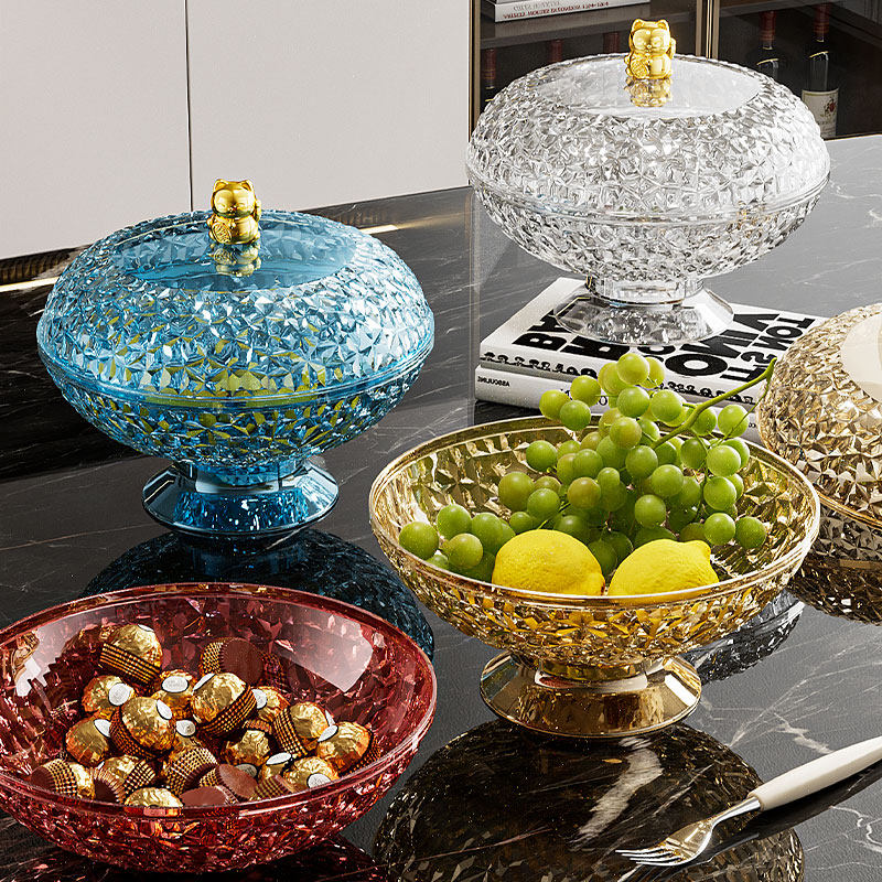 📚 轻奢果盘家用客厅茶几新年沥水果篮带盖高档好看的糖果零食摆放盘