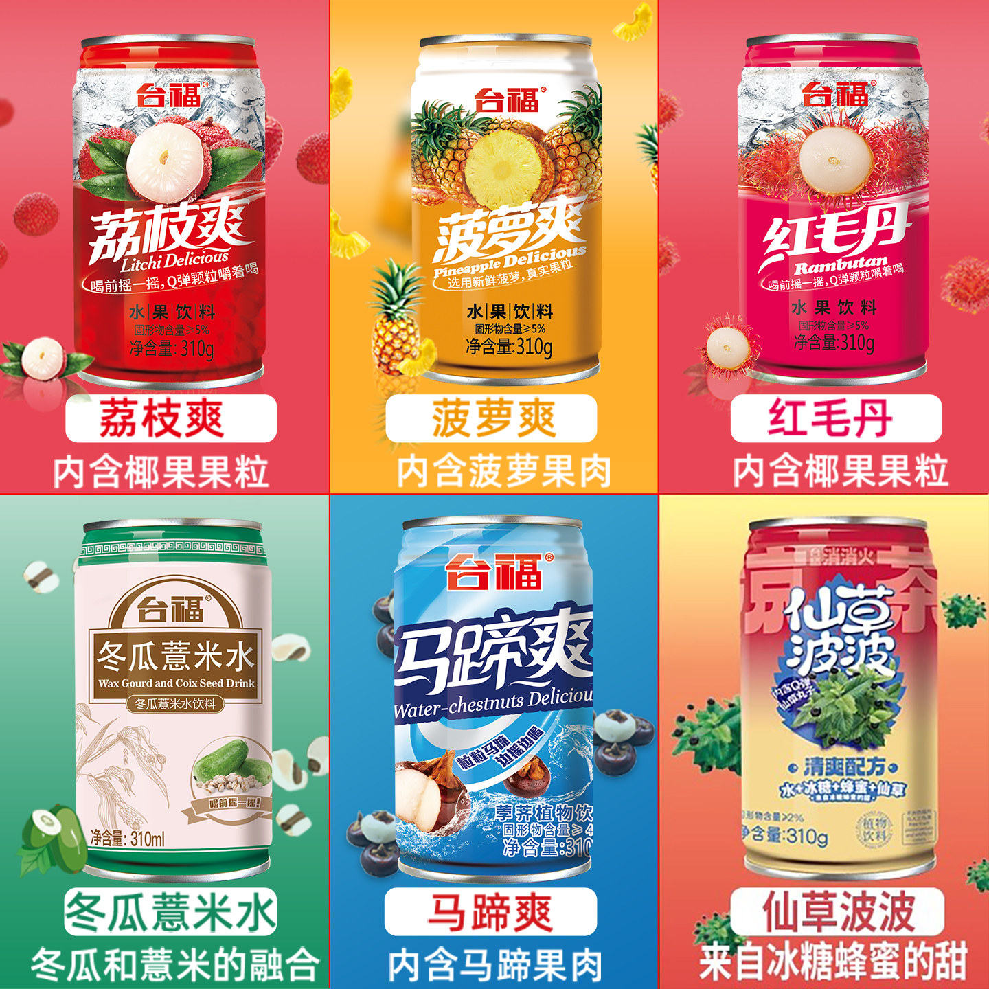 📚 台福冬瓜薏米水红毛丹荔枝马蹄爽水果味果汁饮料拿铁咖啡饮品整箱