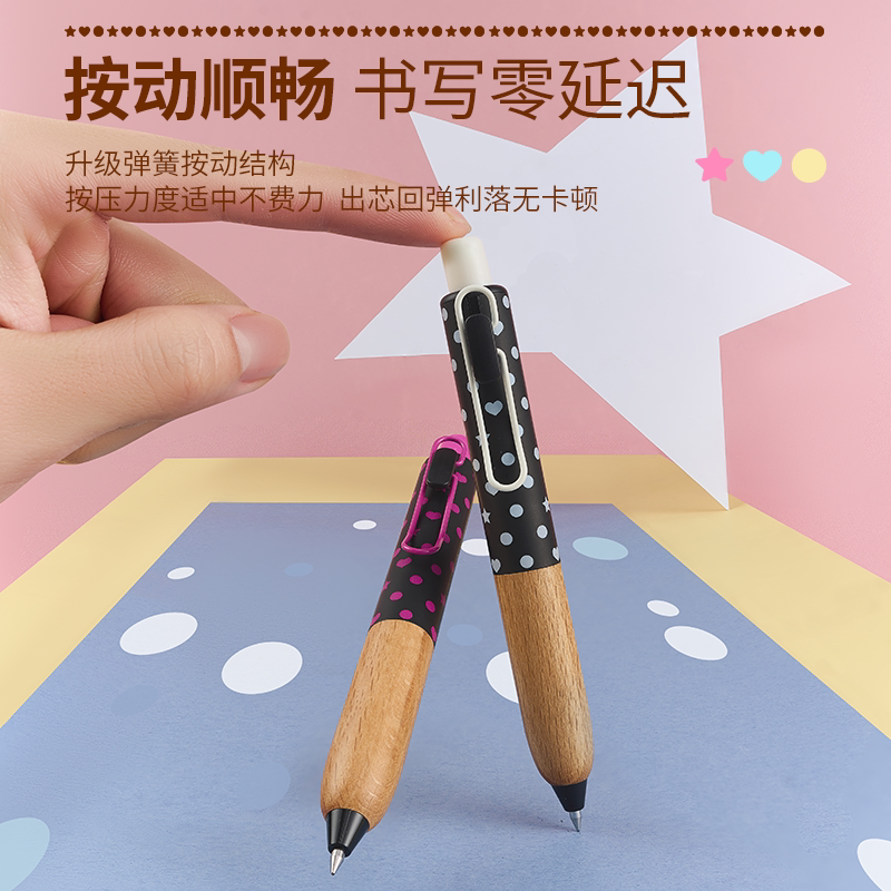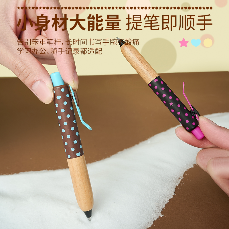 📚 TANOOCI塔诺塞波点限定星心限定小胖笔垫底辣妹手帐黑色中性笔低重心实木质笔握进口替芯顺滑书写盒装签字笔