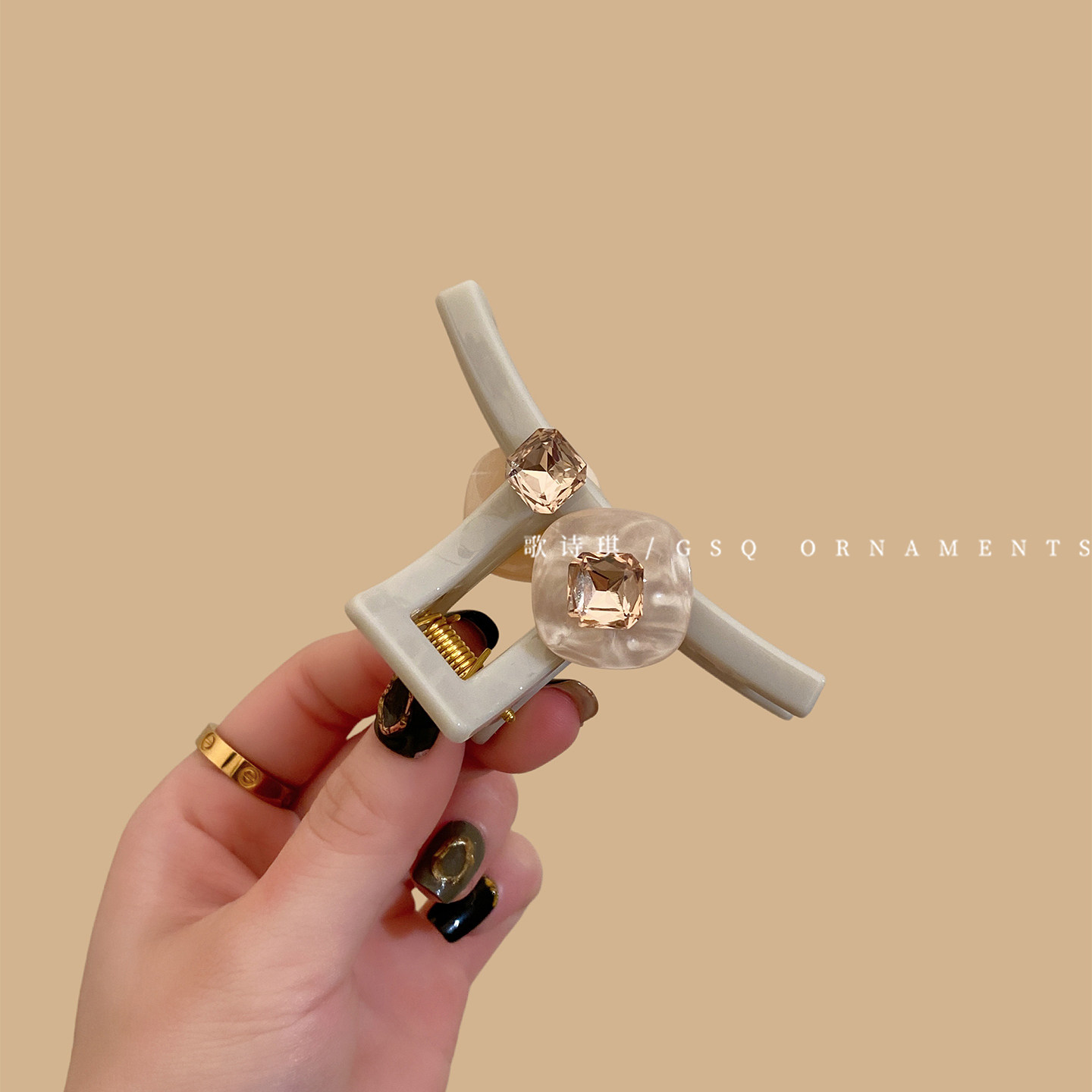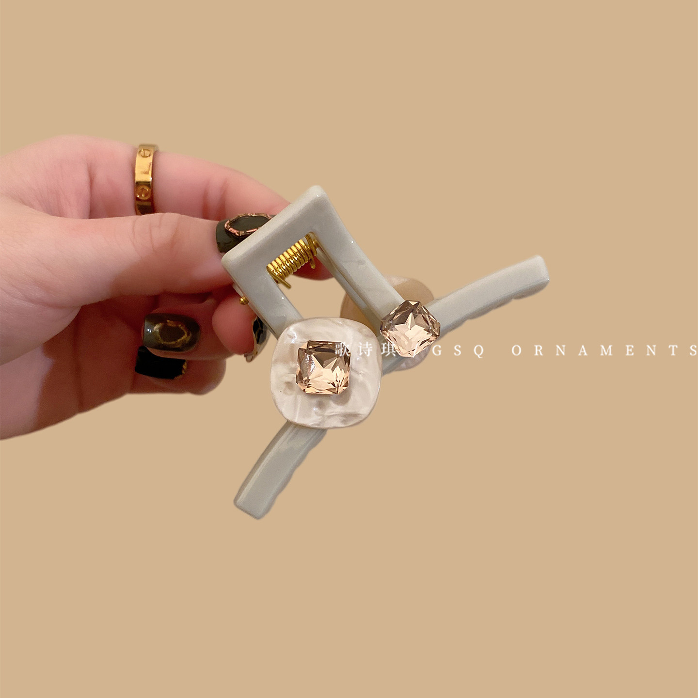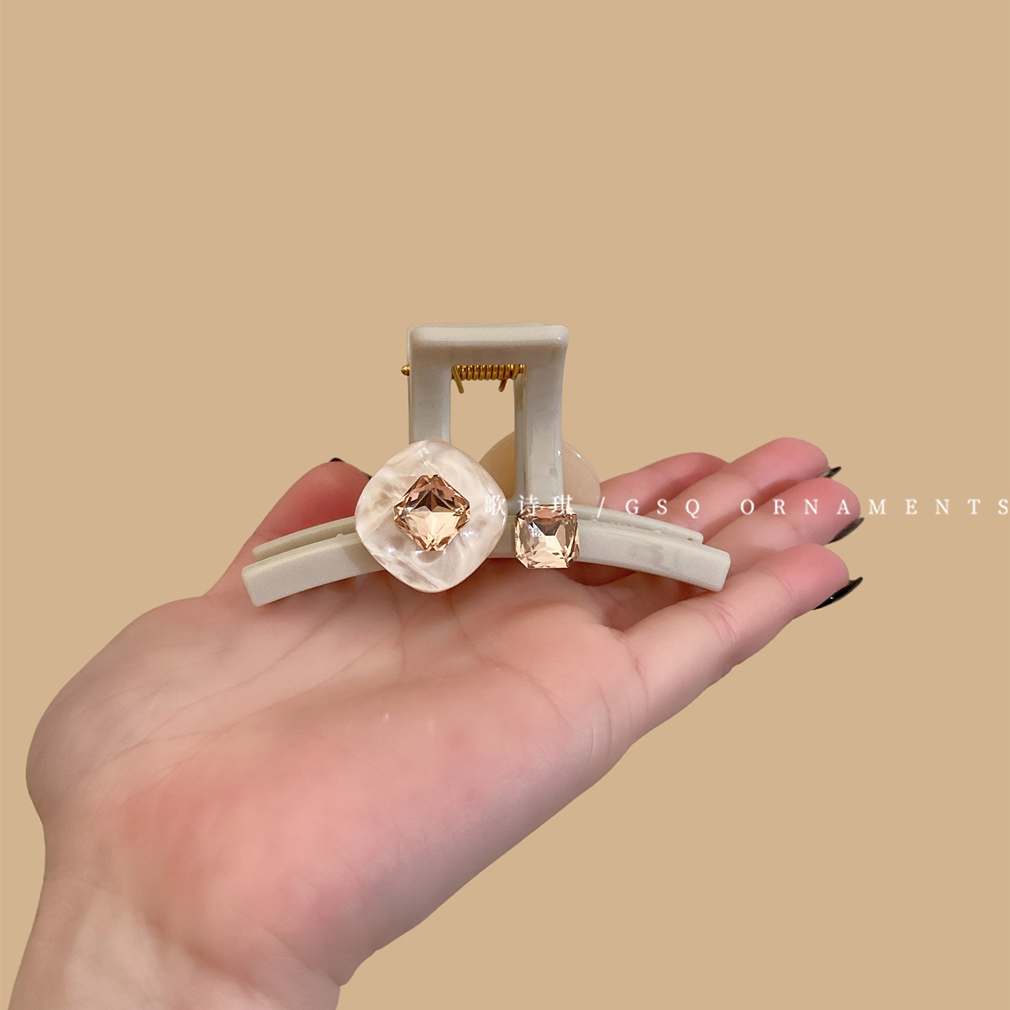 📚 温柔方形水钻贝母醋酸抓夹女高级感后脑勺半扎发鲨鱼夹发夹头饰