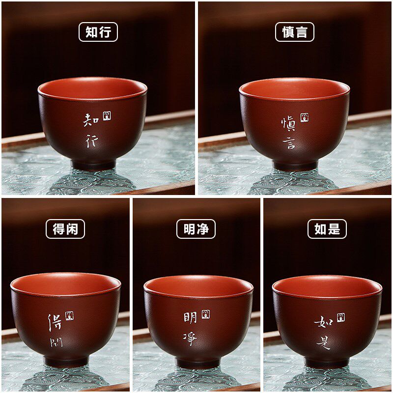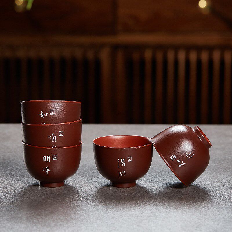 📚 宜兴紫砂主人杯品茗杯中式手绘小茶杯茶盅套装陶瓷功夫茶具茶道杯