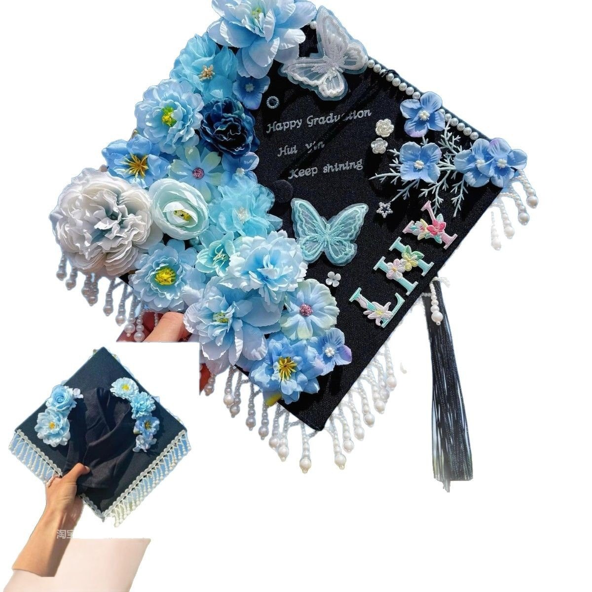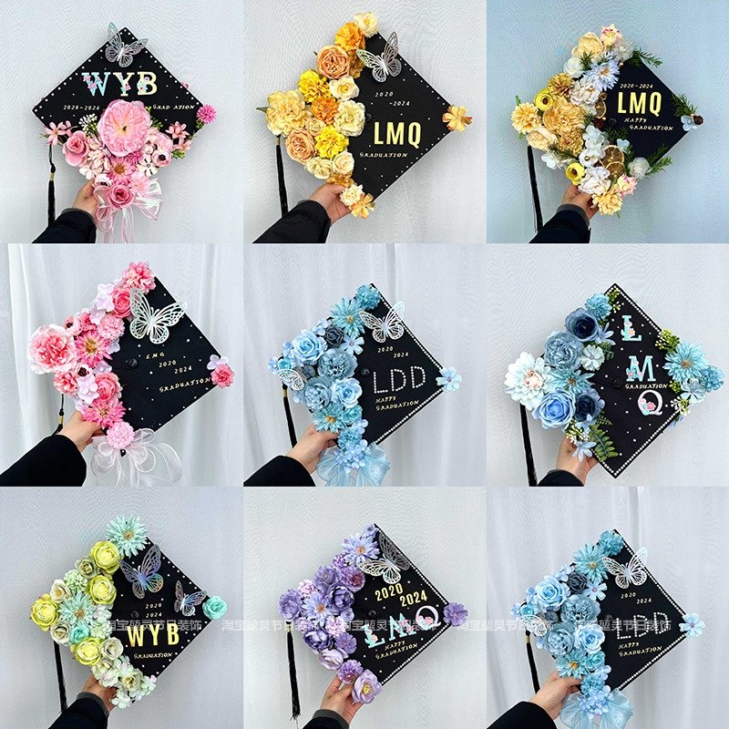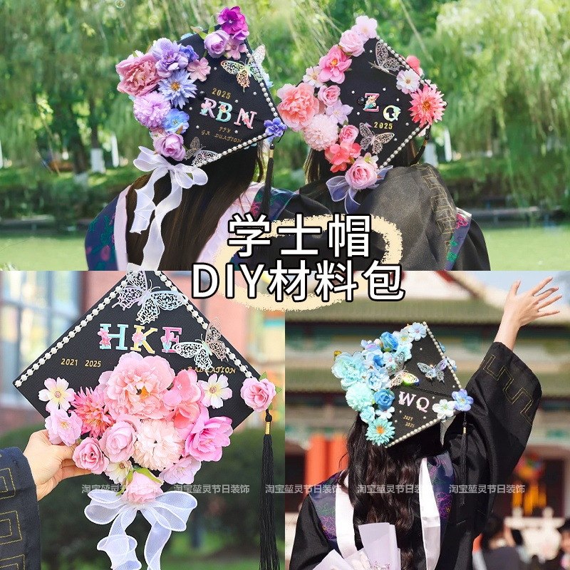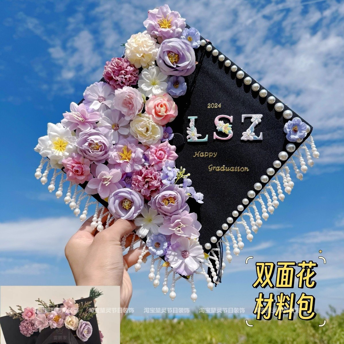 📚 大学生毕业学士帽簪花硕士拍照仿真花朵手工diy材料包毕业礼物
