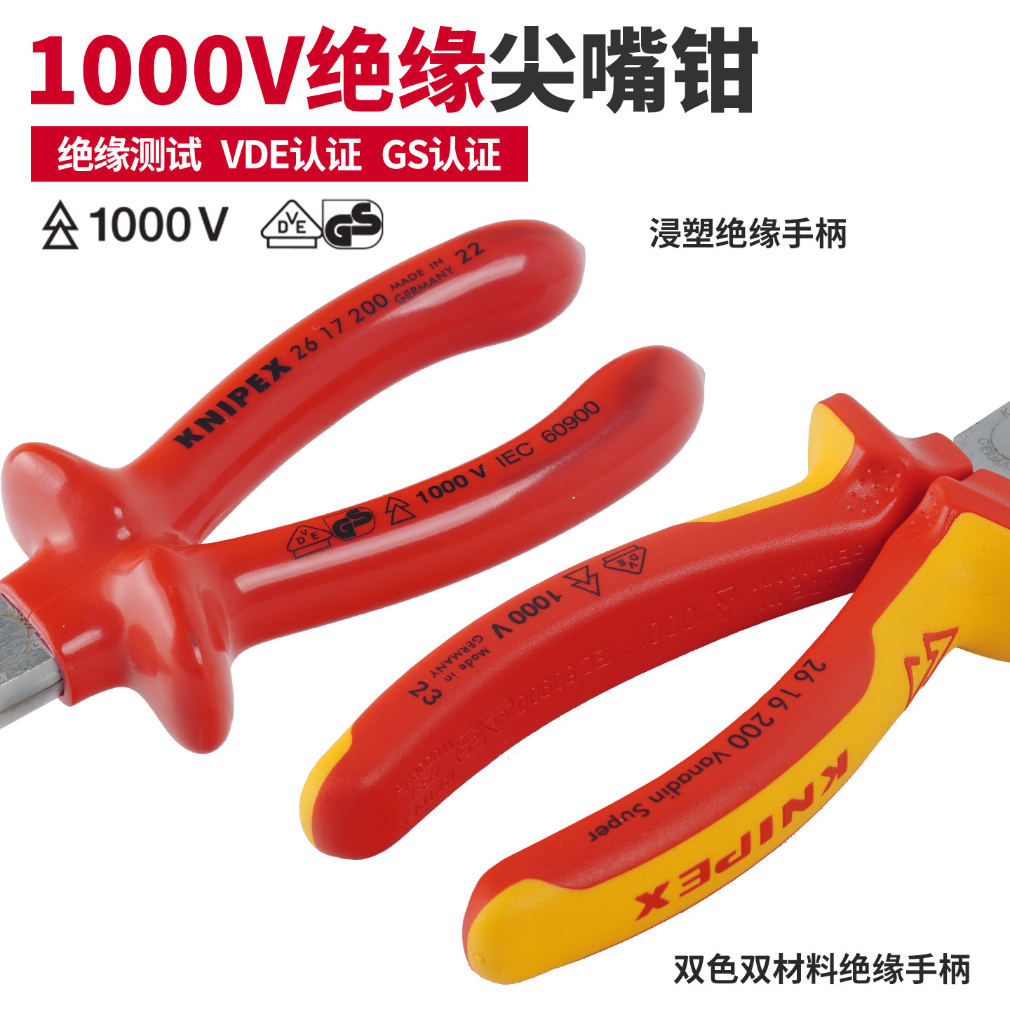 📚 KNIPEX凯尼派克尖嘴钳德国进口钳子工具弯嘴绝缘电工钳25 01 160