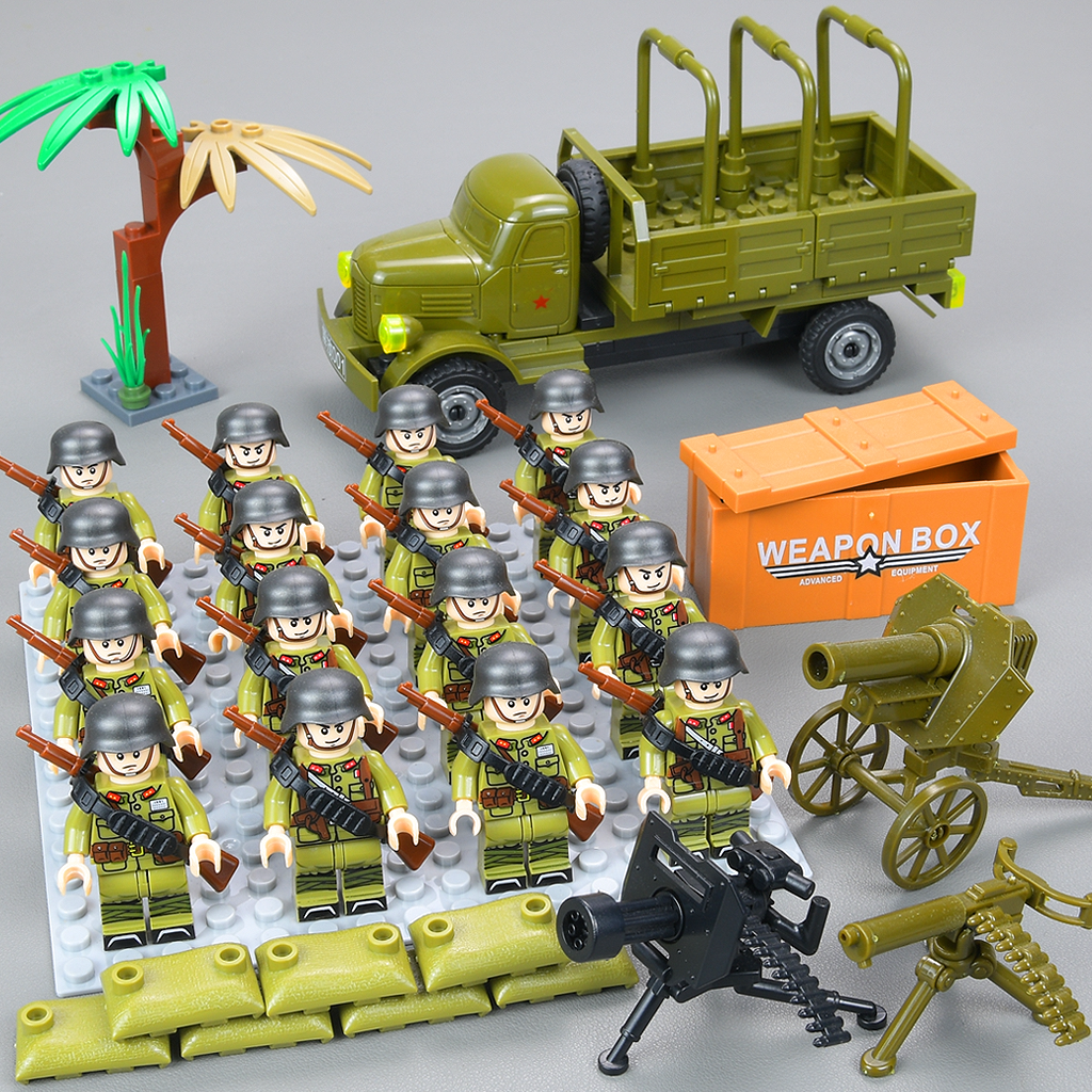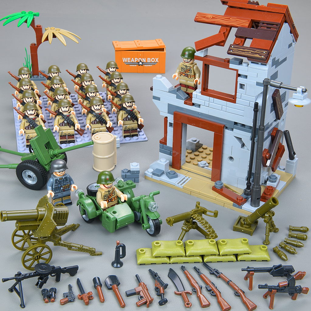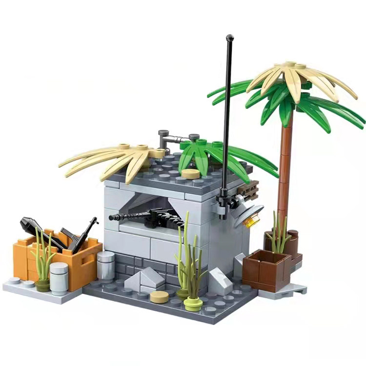 📚 乐高积木作战指挥基地德军碉堡武器装备机枪阵地废墟场景拼装积木