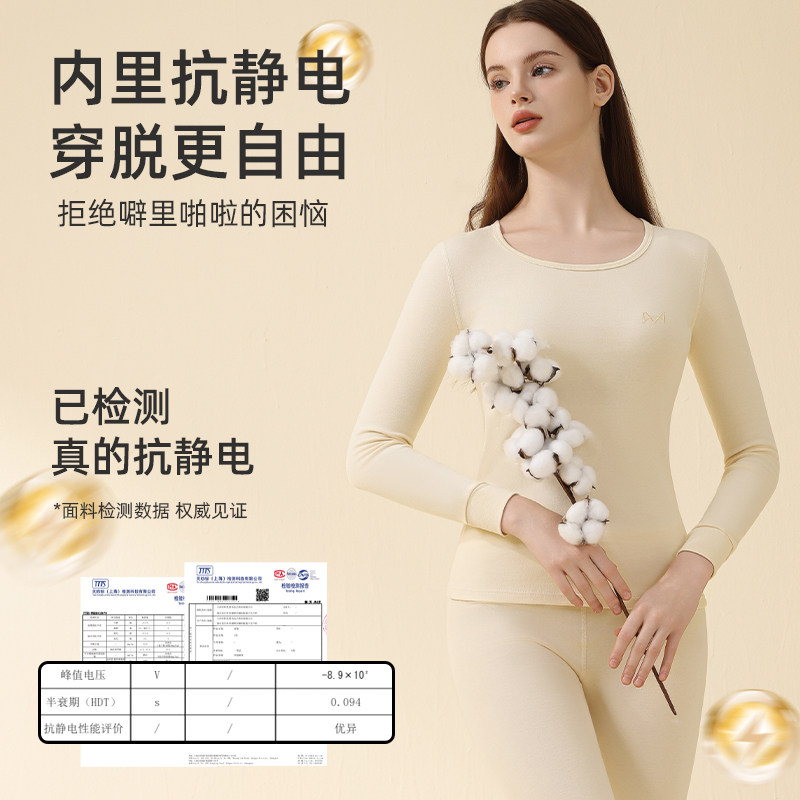 📚 猫人防静电纯棉白色秋衣秋裤套装男士女款全棉打底衫情侣保暖内衣