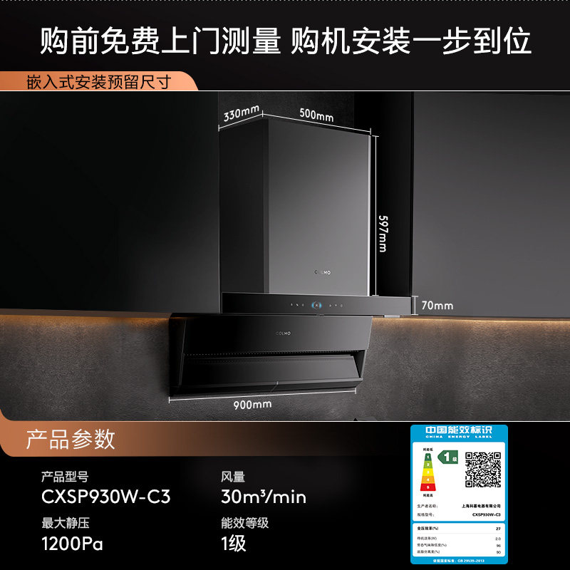 📚 COLMO黑珍珠抽油烟机C3家用顶侧双吸厨房30m³大吸力AI超感免调档